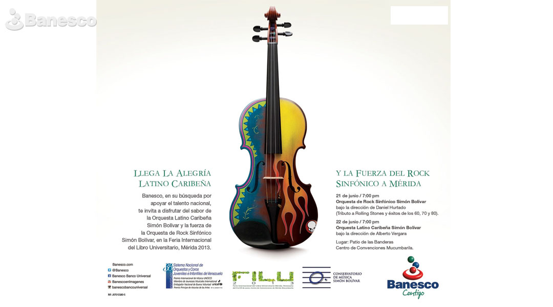 Invitación a apoyar el talento nacional y disfrutar del sabor de la Orquesta Latino Caribeña Simón Bolívar y la fuerza de la Orquesta de Rock Sinfónico Simón Bolívar.