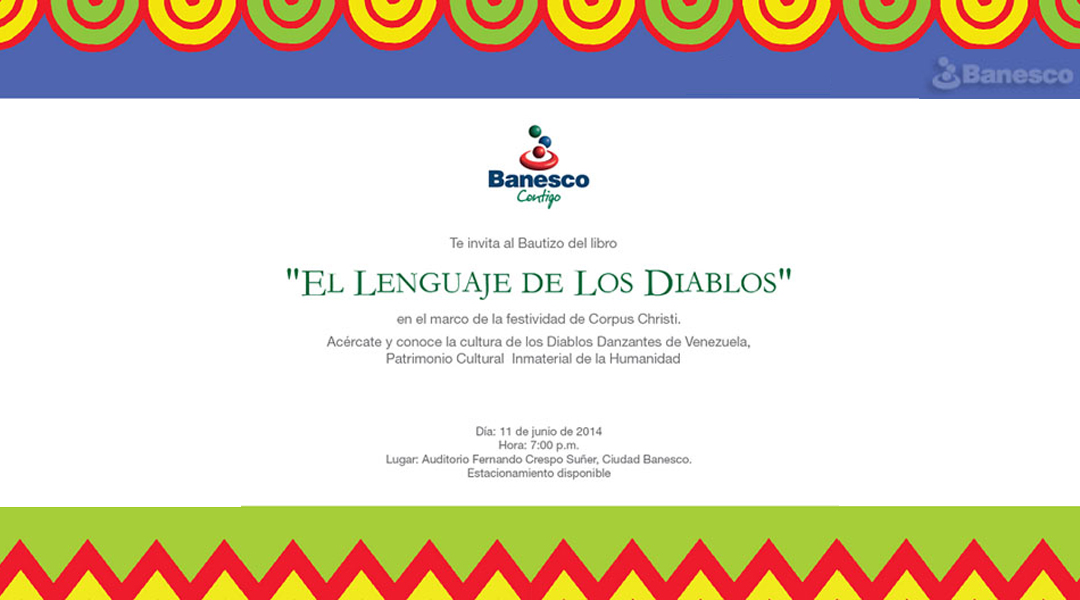 Invitación al bautizo del libro, en el marco de la festividad de Corpus Christi. Acércate y conoce la cultura de los Diablos Danzantes de Venezuela.