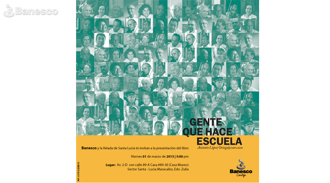 Invitación a la presentación del Libro Gente que Hace Escuela, compilador Antonio López Ortega realizado en la Casa Museo en el Sector Santa Lucia de Maracaibo, estado Zulia.
