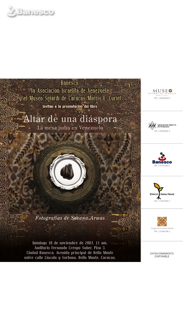 Presentación del libro que son fotografías de Susana Arwas, patrocinado por Banesco, la Asociación Israelita de Venezuela y el Museo Sefardi de Caracas Morris E. Curiel.
