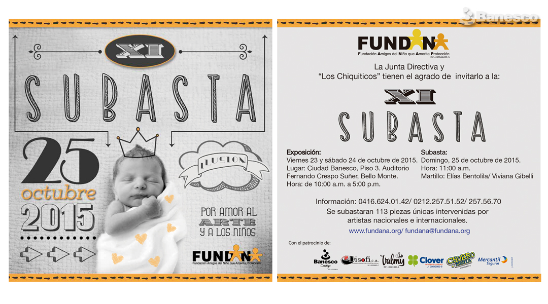 La Junta Directiva y ''Los Chiquiticos'' invitan a la XI Subasta. Donde se subastarán 113 piezas únicas de artistas nacionales e internacionales.