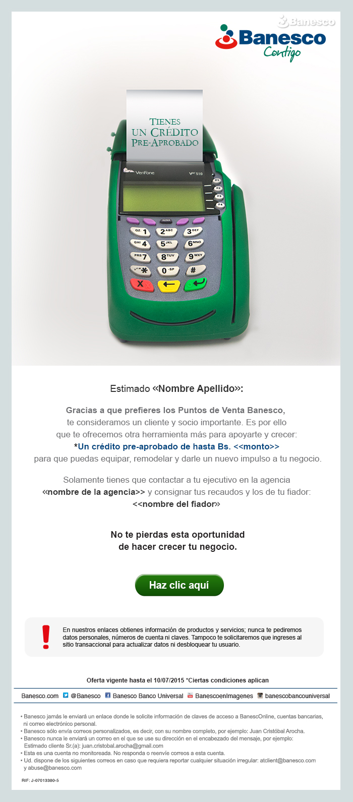 Mailing Impulso Créditos válido hasta julio del 2015: "Tienes un Crédito Pre-Aprobado".