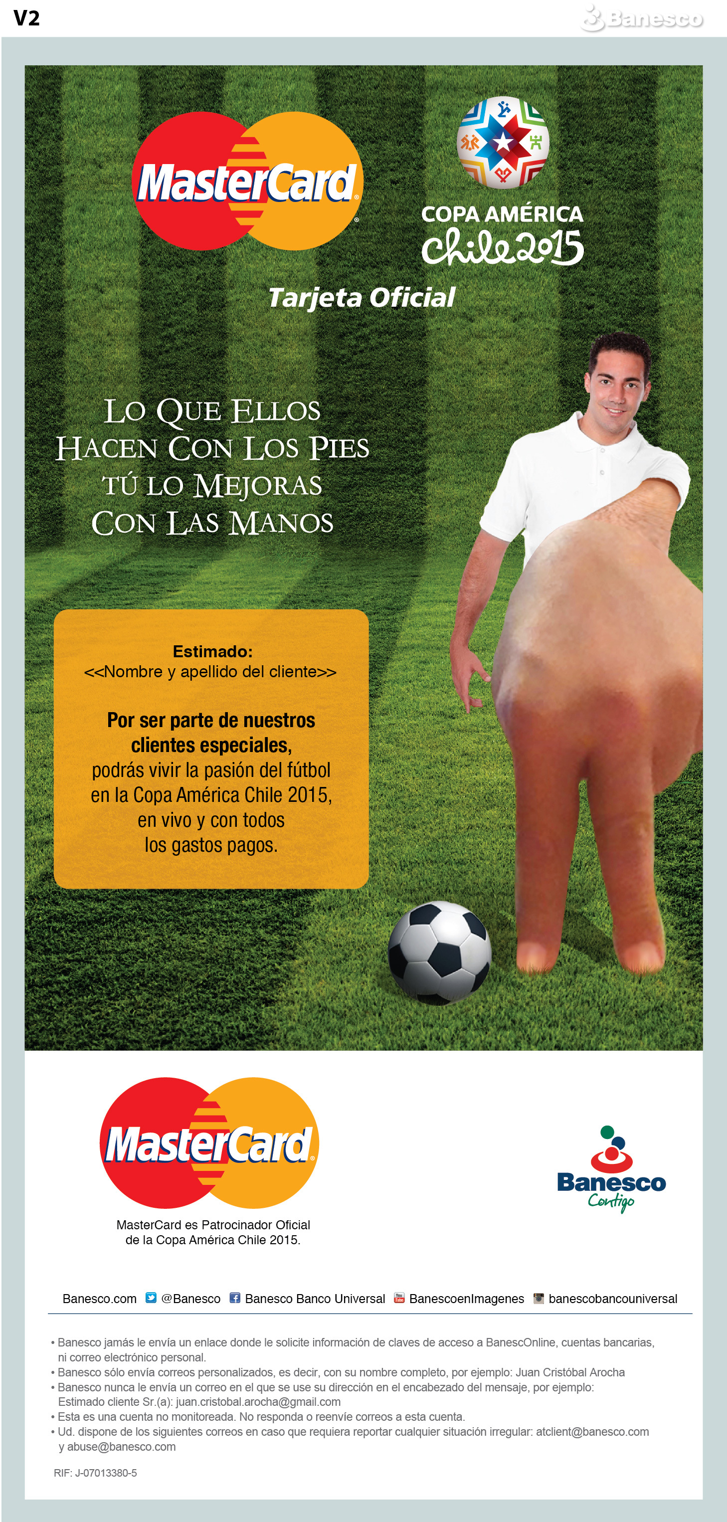 Mailing Genérico Focalizado en Ganador del Viaje a Chile con la Promoción MasterCard Copa América Chile 2015.