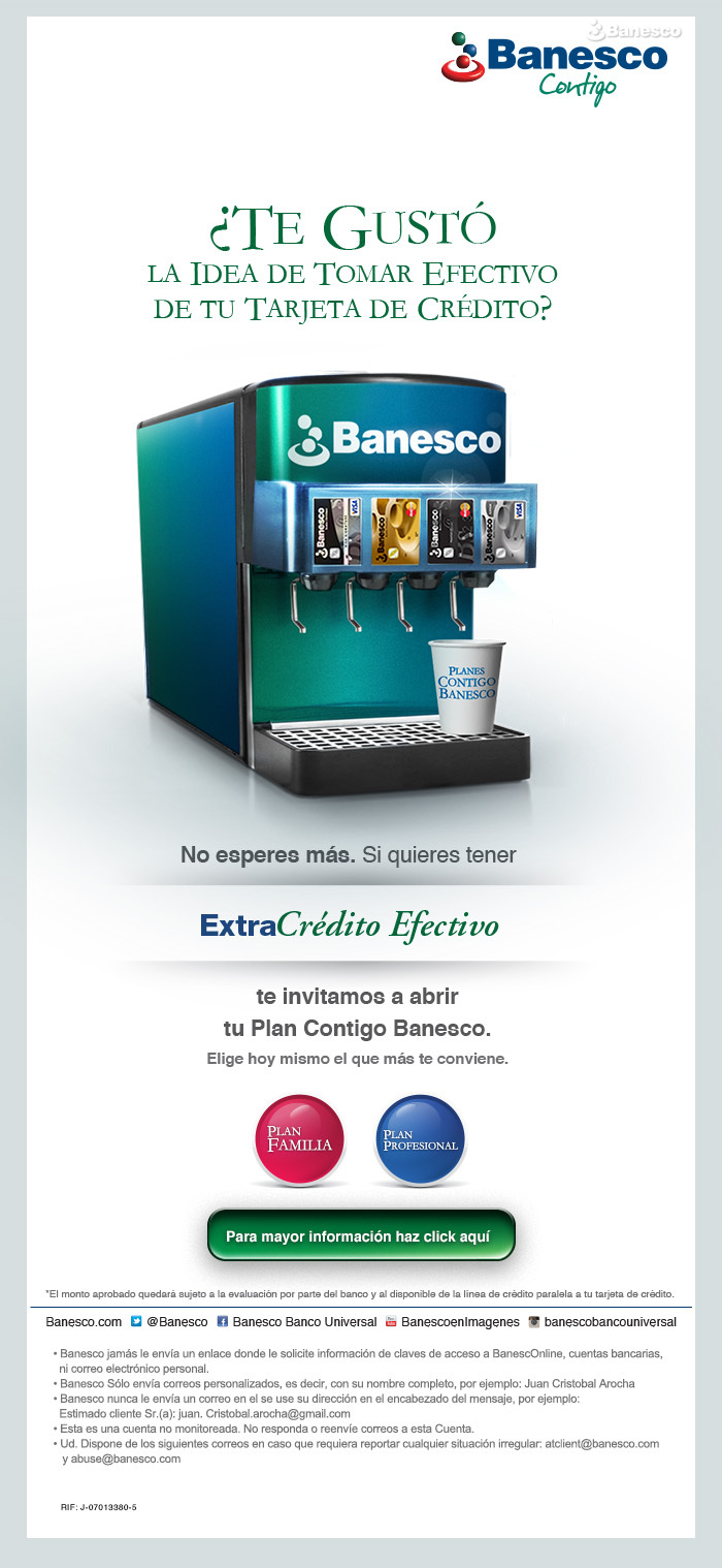 Aviso para email: Si el cliente desea tener extracrédito efectivo se le invita a abrir el plan Contigo Banesco: plan familia o plan profesional.