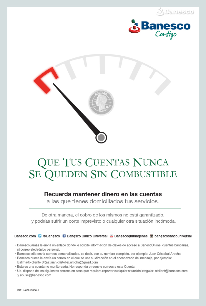 Aviso para email: Recordatorio al cliente de mantener dinero en sus cuentas domiciliadas, debido a que de otra manera no está garantizando el cobro del servicio.