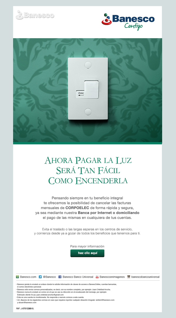 Servicio ofrecido por Banesco Banco Universal, mediante el cual podrás cancelar tu factura de CORPOELEC a través de la Banca por Internet o desde cualquiera de tus cuentas Banesco.