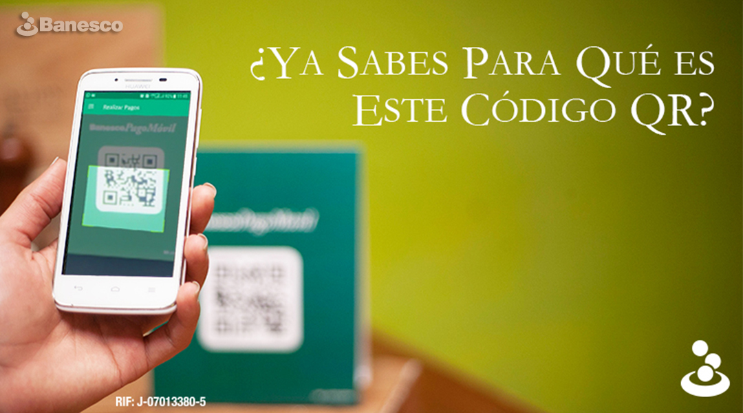 Imagen publicitaria de Banesco Banco Universal, sobre el código QR del servicio Banesco PagoMóvil.
