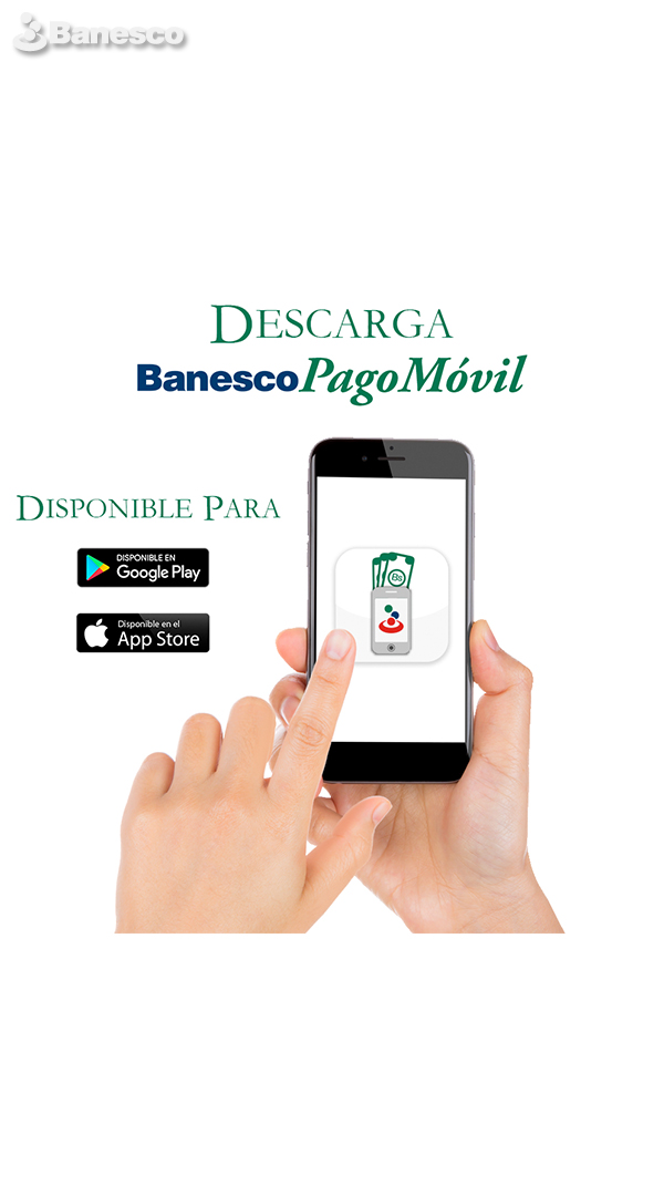 Imagen publicitaria de Banesco PagoMóvil, promoviendo la descarga de la aplicación en los dispositivos móviles.