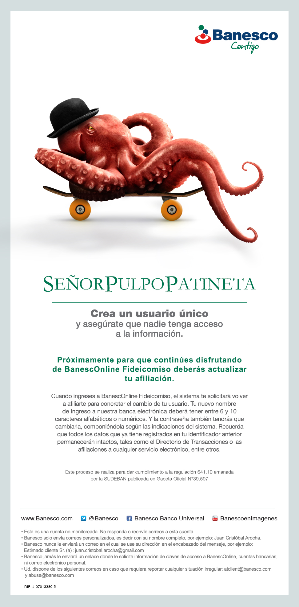 BanescOnline Fideicomiso: Señor Pulpo Patineta
