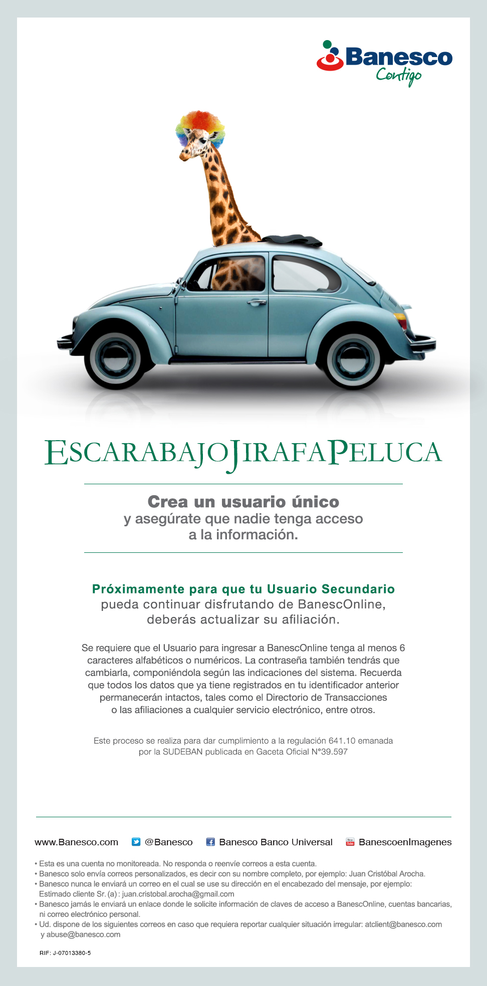 BanescOnline usuario secundario: Escarabajo Jirafa Peluca