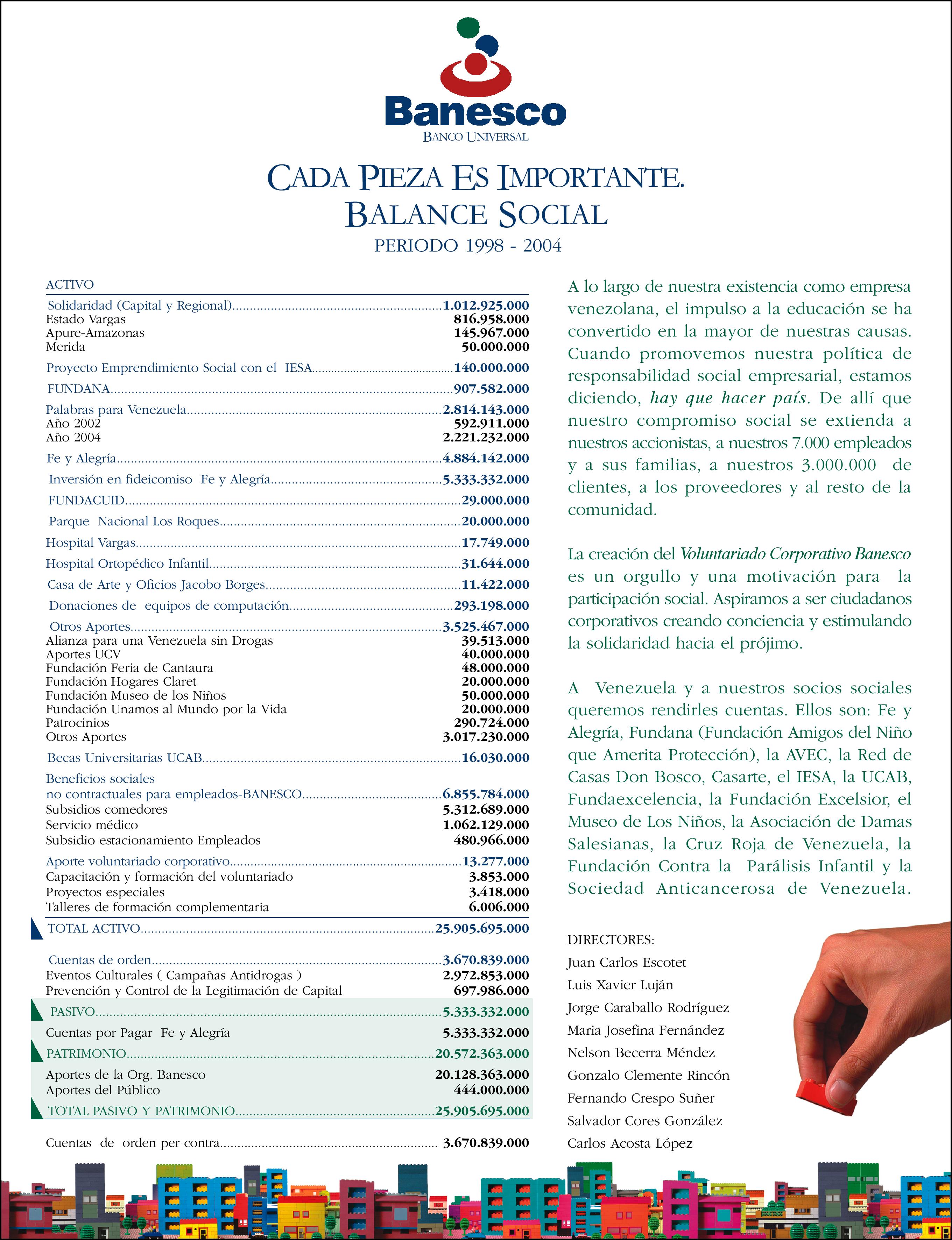 Resumen del Balance Social de Banesco Banco Universal, para el periodo de 1998 - 2004.