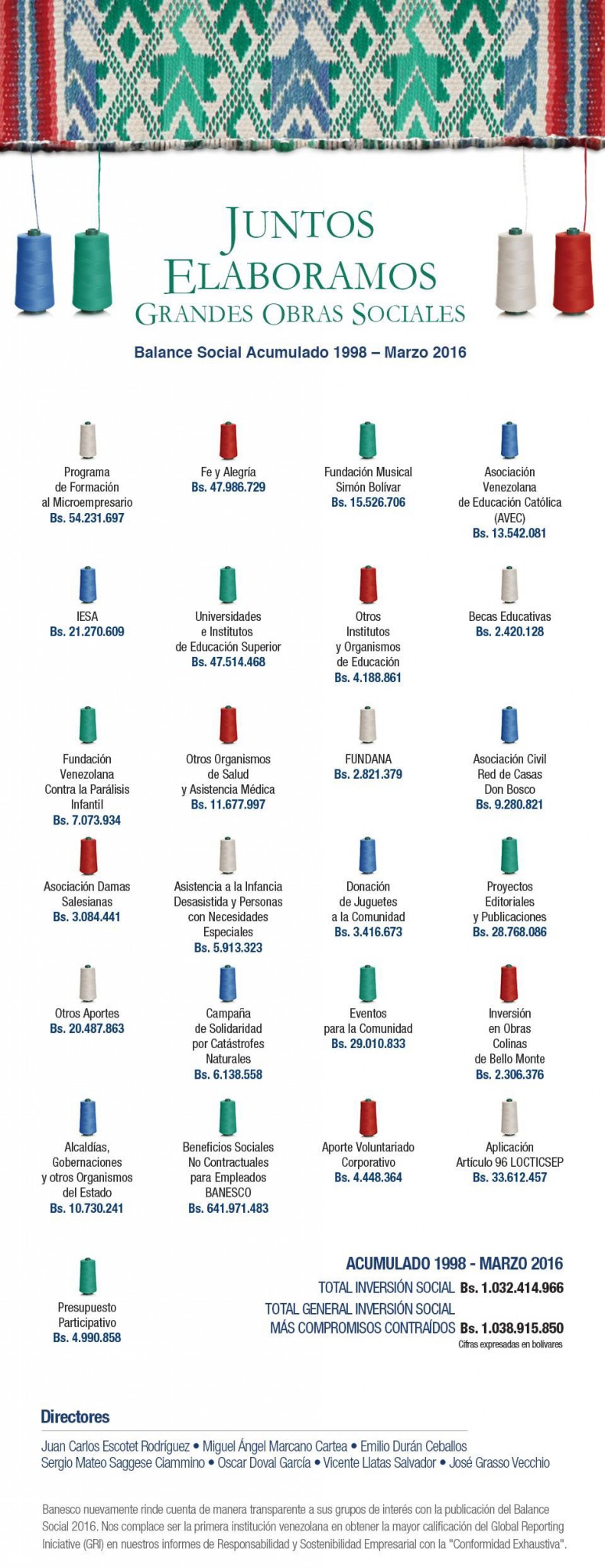 Balance Social Acumulado de Banesco Banco Universal, al primer trimestre del año 2016.