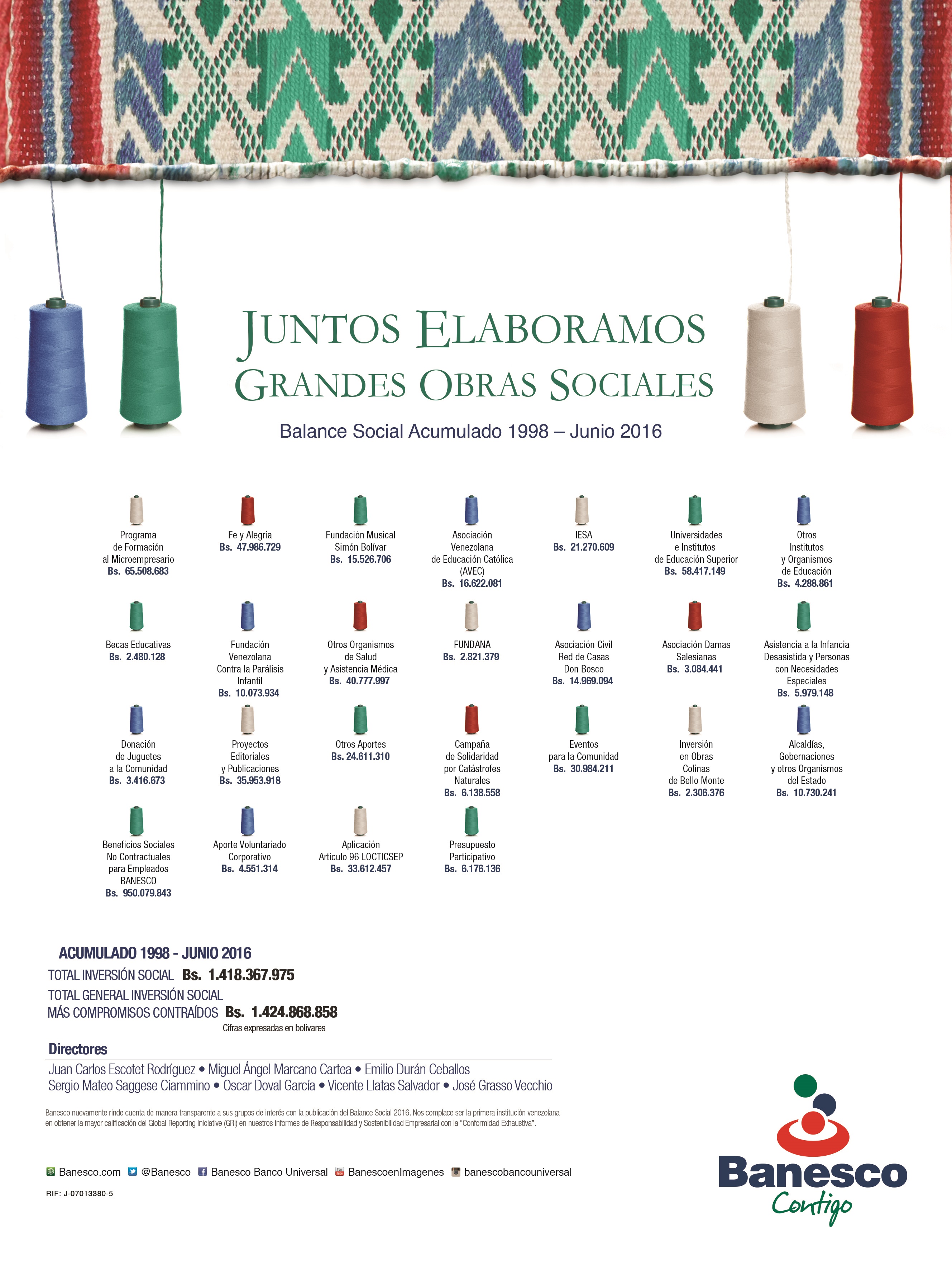 Balance Social Acumulado de Banesco Banco Universal, al segundo trimestre del año 2016.