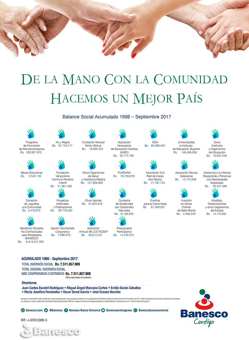 Balance Social Acumulado de Banesco Banco Universal, al tercer trimestre del año 2017.