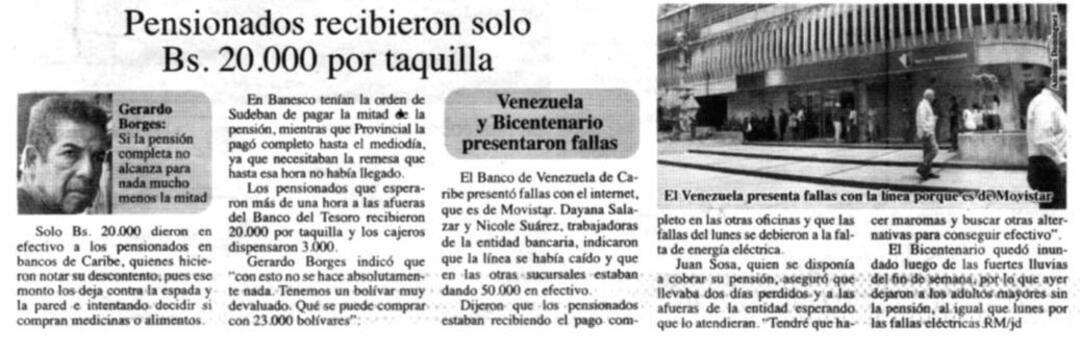 Pensionados recibieron solo Bs. 20.000 por taquilla