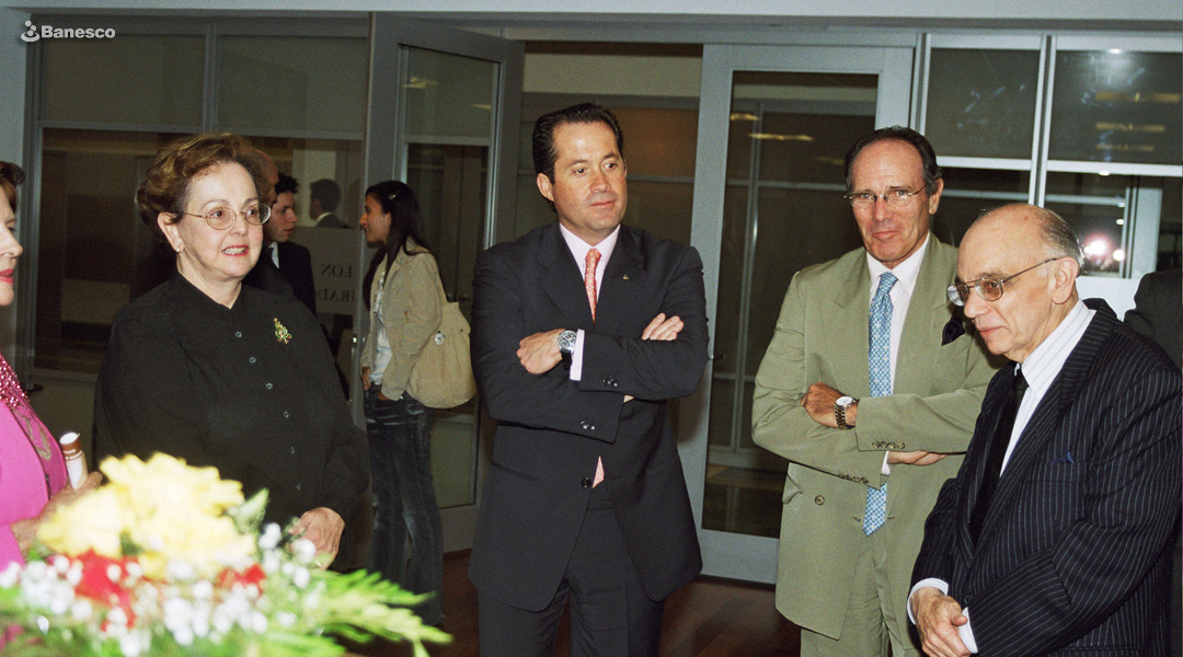 Juan Carlos Escotet Rodríguez y José Antonio Abreu (derecha), músico, economista, educador venezolano y fundador del Sistema Nacional de Coros y Orquestas Juveniles e Infantiles de Venezuela; con invitados, después de presentación de la Orquesta de Cuerdas Jóvenes Arcos en el auditorio Fernando Crespo Suñer de Ciudad Banesco.