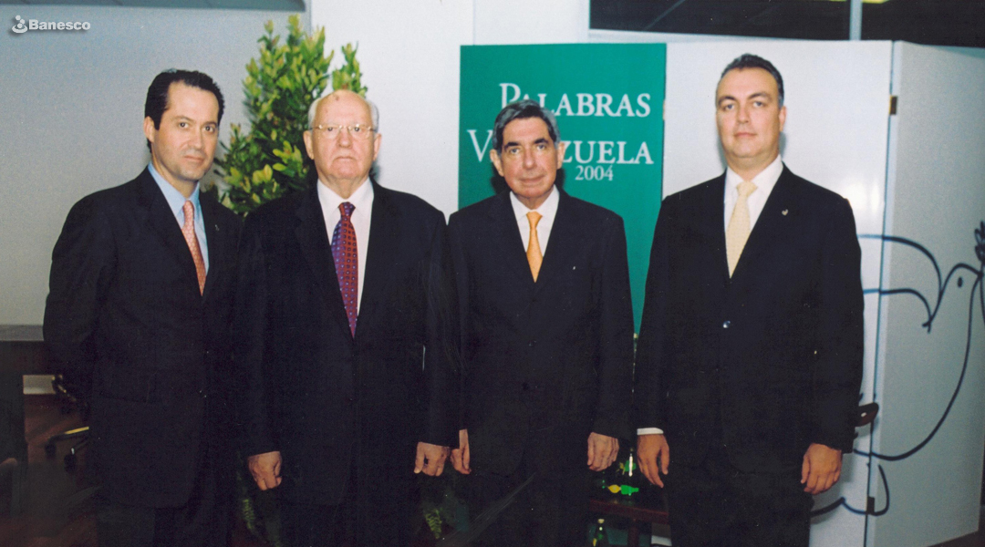 Juan Carlos Escotet Rodríguez, Mijaíl Gorbachov, Último dirigente de la URSS, Premio Nobel de la Paz 1990, abogado y político; Óscar Arias, expresidente de Costa Rica, Premio Nobel de la Paz 1987, abogado, economista, politólogo y empresario; y Xavier Lujan en el evento de Palabras para Venezuela 2004.