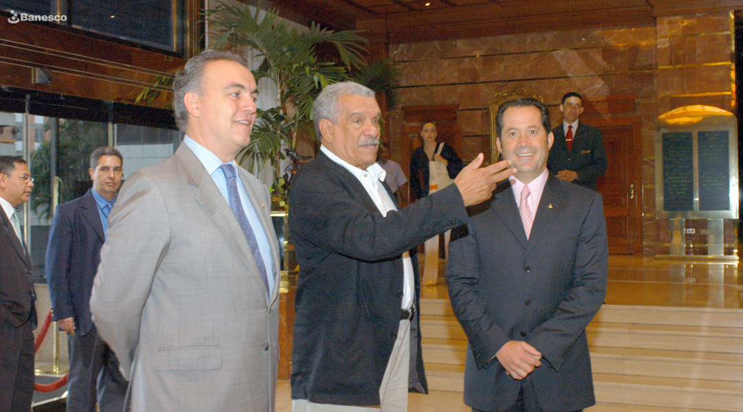 Juan Carlos Escotet Rodríguez y Derek Walcott, ganador del Premio Nobel de Literatura en 1992, poeta, dramaturgo y artista visual santaluciano en el marco del evento Palabras para Venezuela 2007.