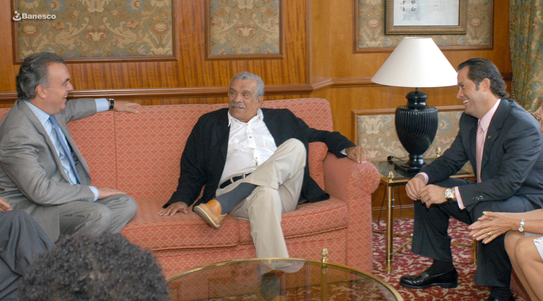 Juan Carlos Escotet y Derek Walcott, poeta, escritor y artista visual caribeño, Premio Nobel de Literatura.