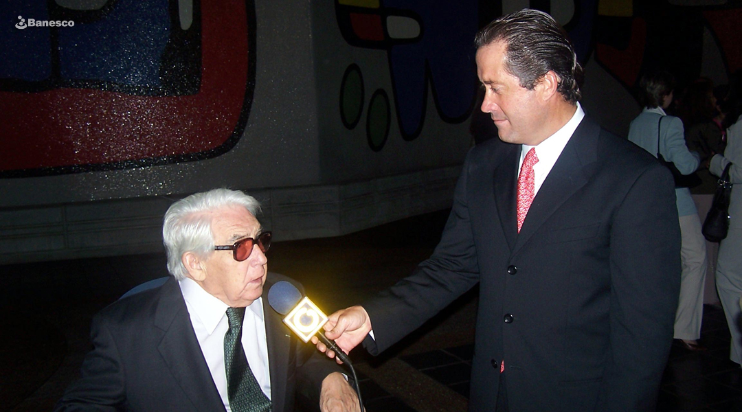 Juan Carlos Escotet Rodríguez y Oswaldo Vigas, pintor y muralista venezolano después de la inauguración del Mural "Trilogía" en entrevista realizada para el medio de comunicación Globovisión.
