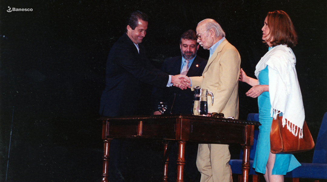 Juan Carlos Escotet Rodríguez y Ernesto Sábato, escritor e intelectual argentino; durante la primera edición del evento Palabras para Venezuela en el año 2002.