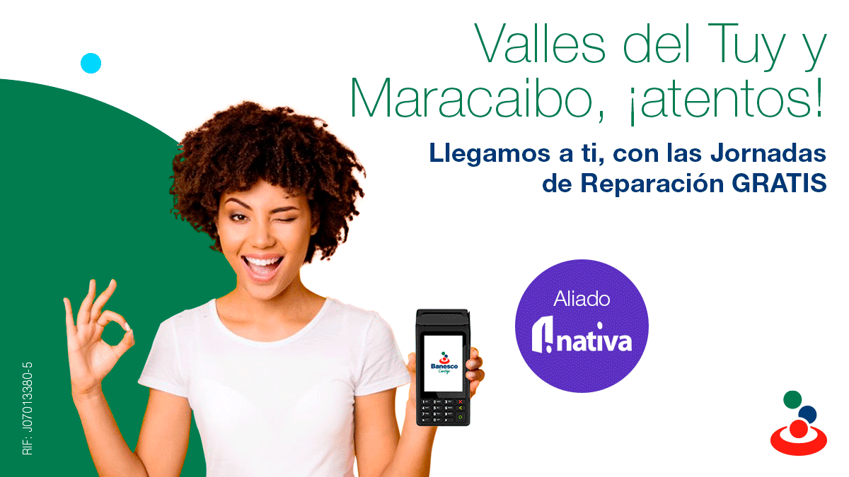 Campaña informativa de nuestro aliado comercial Nativa Pagos que ofrece a los afiliados comerciales Banesco, la reparación de sus puntos de venta sin costo.
