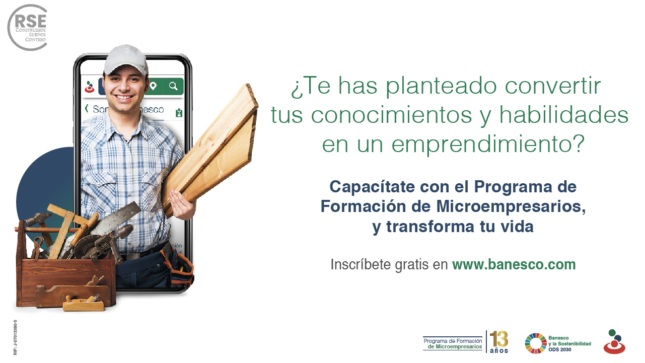 Banesco Banco Universal, cuya política de Responsabilidad Social Empresarial y Sostenibilidad tiene como pilares el fomento a la educación, la salud y la inclusión financiera. Esta capacitación promueve la educación financiera de los venezolanos, y aporta herramientas administrativas, personales, gerenciales y tecnológicas para que hombres y mujeres mayores de 18 años, obtengan las competencias necesarias para manejar con éxito su negocio propio.