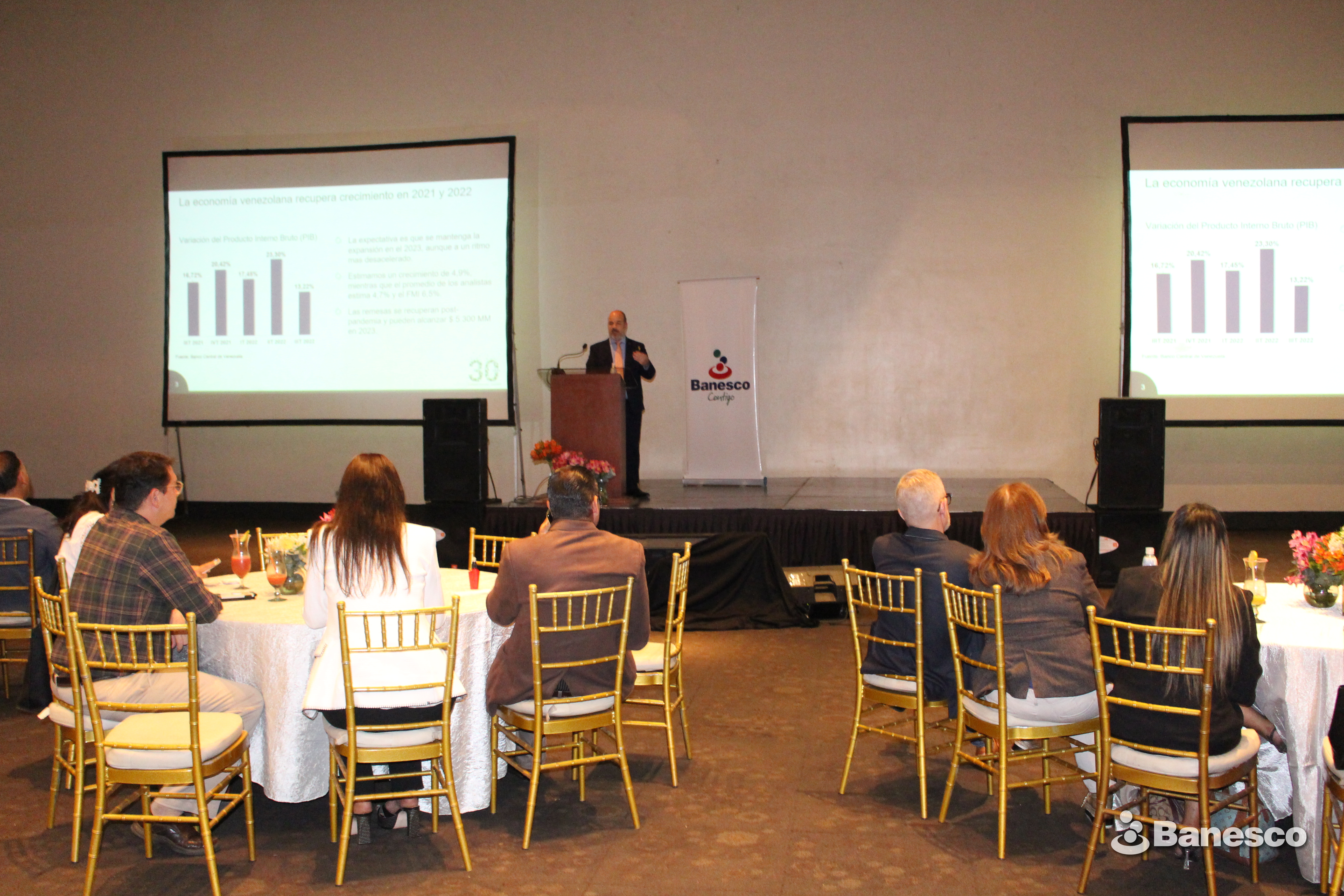 Ciudadanos Banesco durante el discurso de Cesar Carrasquel en el encuentro regional de Banesco Banco Valencia 2023