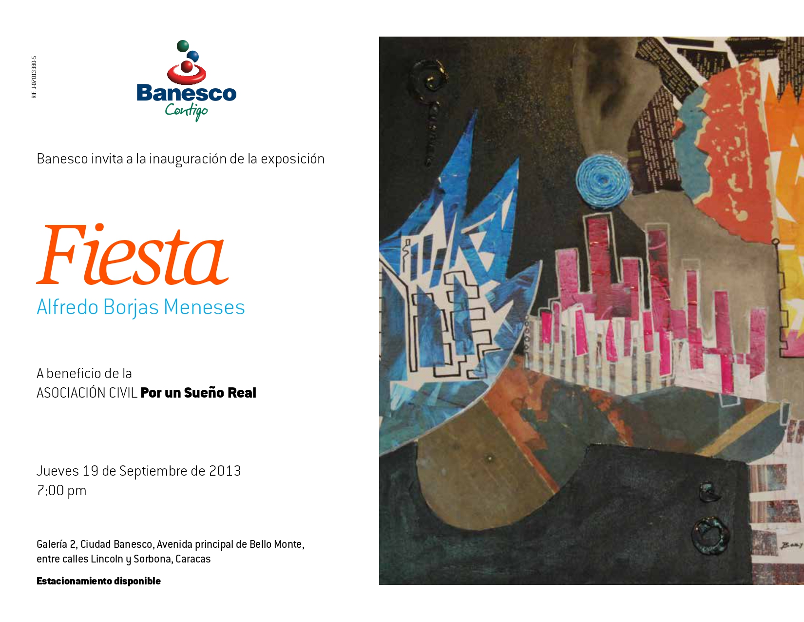 Banesco invita a la inauguración de la exposición Fiesta Alfredo Borjas Meneses a beneficio de la ASOCIACIÓN CIVIL Por un Sueño Real.