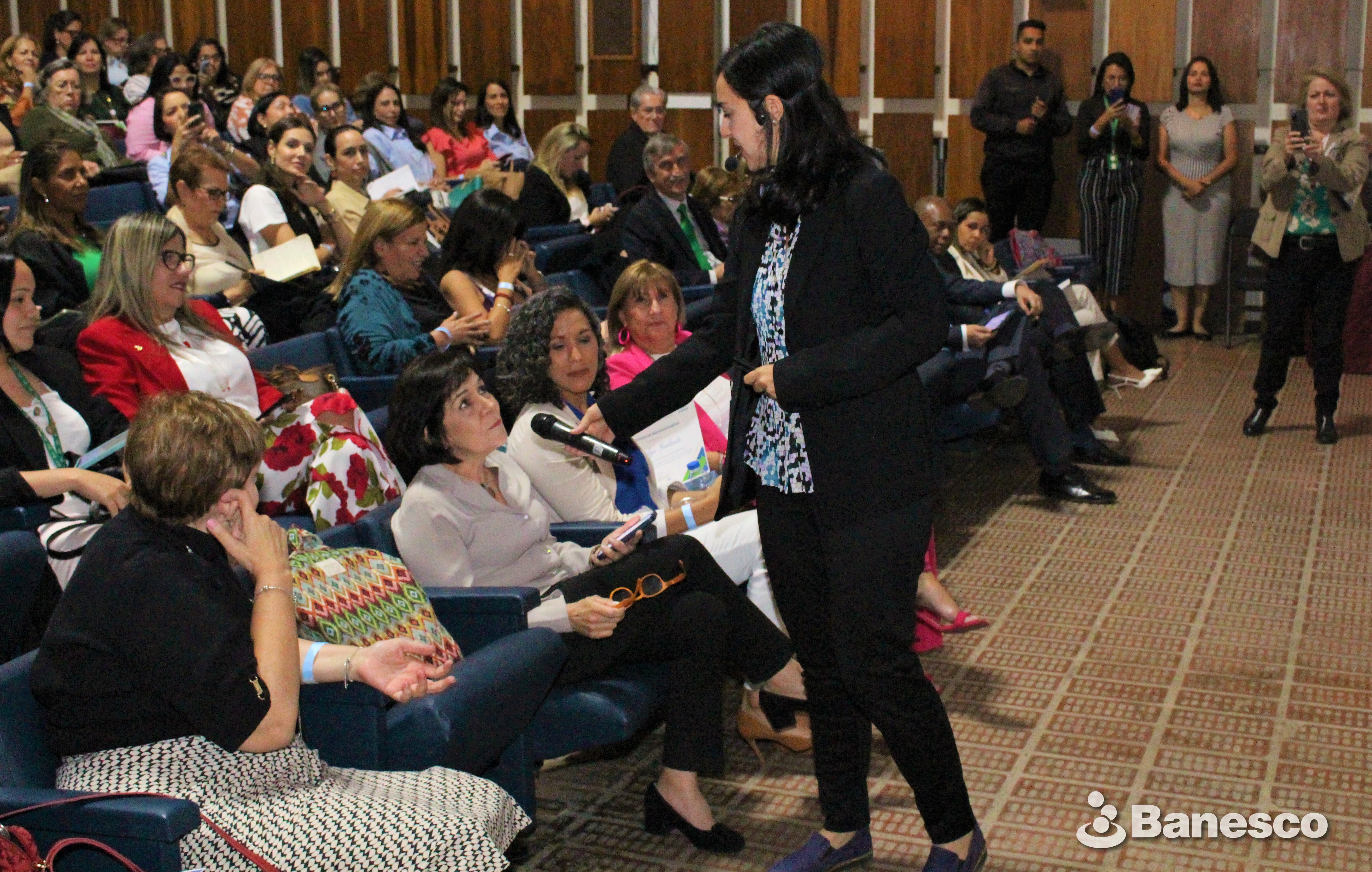 Rosamaría Atencio, VP de Comunicaciones y Responsabilidad Social Empresarial, junto a Doralys Guilarte, siendo entrevistada en el marco del foro de la Federación de Instituciones Privadas de Atención al Niño, el Joven y la Familia (FIPAN) 2023.