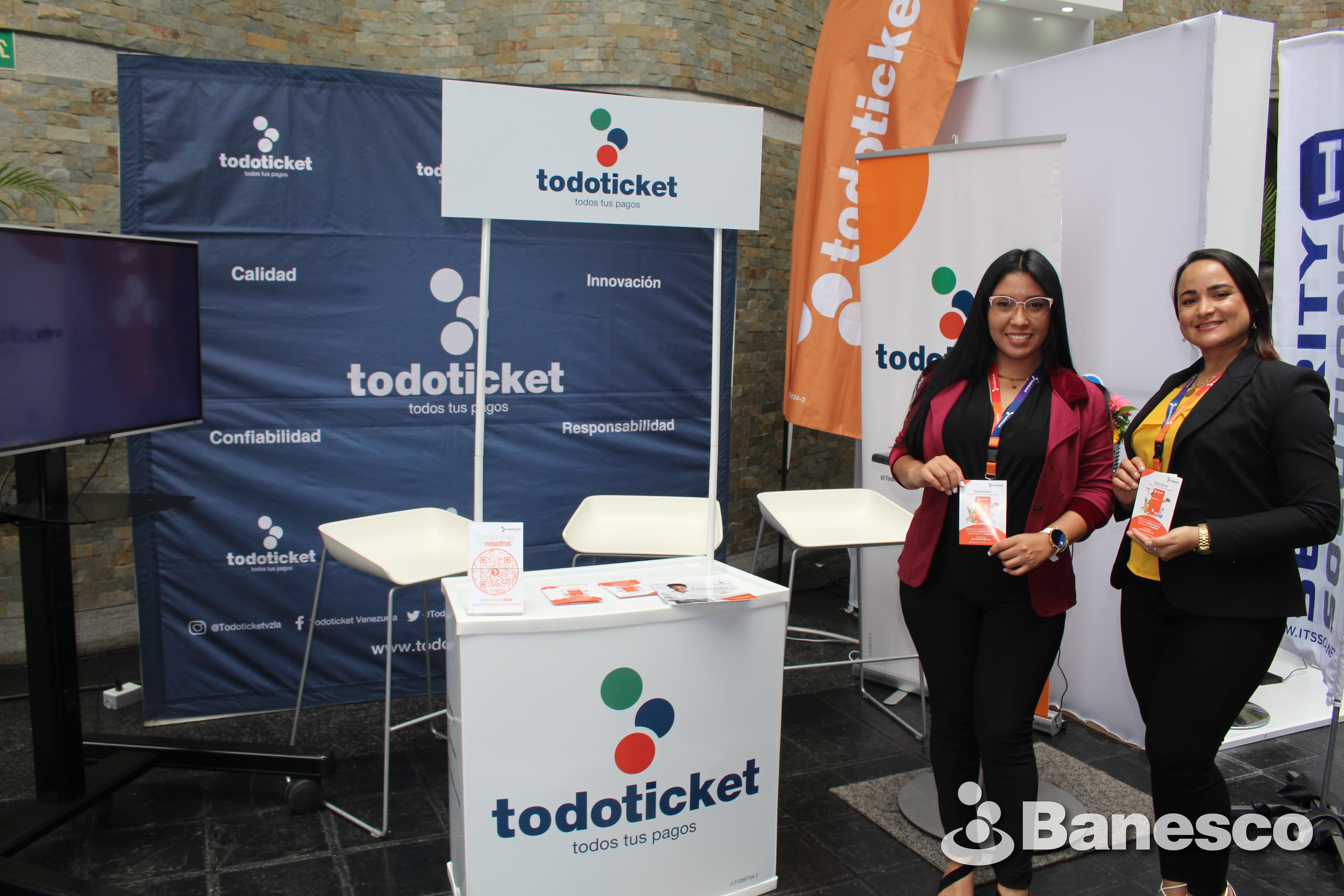 Promotoras de Todoticket junto su stand haciendo acto de presencia durante el evento de Banexpo 2023.