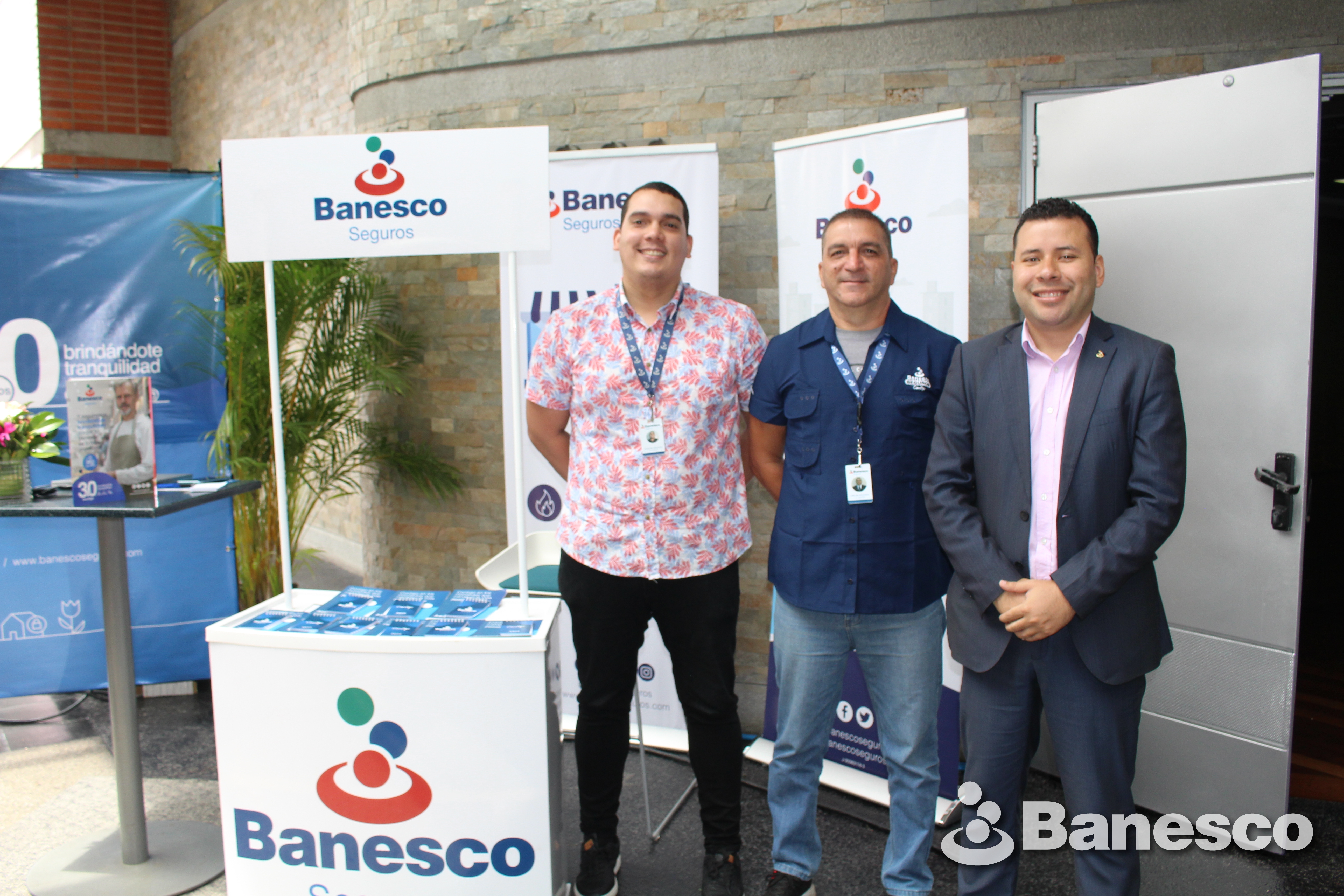 Promotores de Banesco Seguros junto a su stand haciendo acto de presencia durante el evento Banexpo 2023.