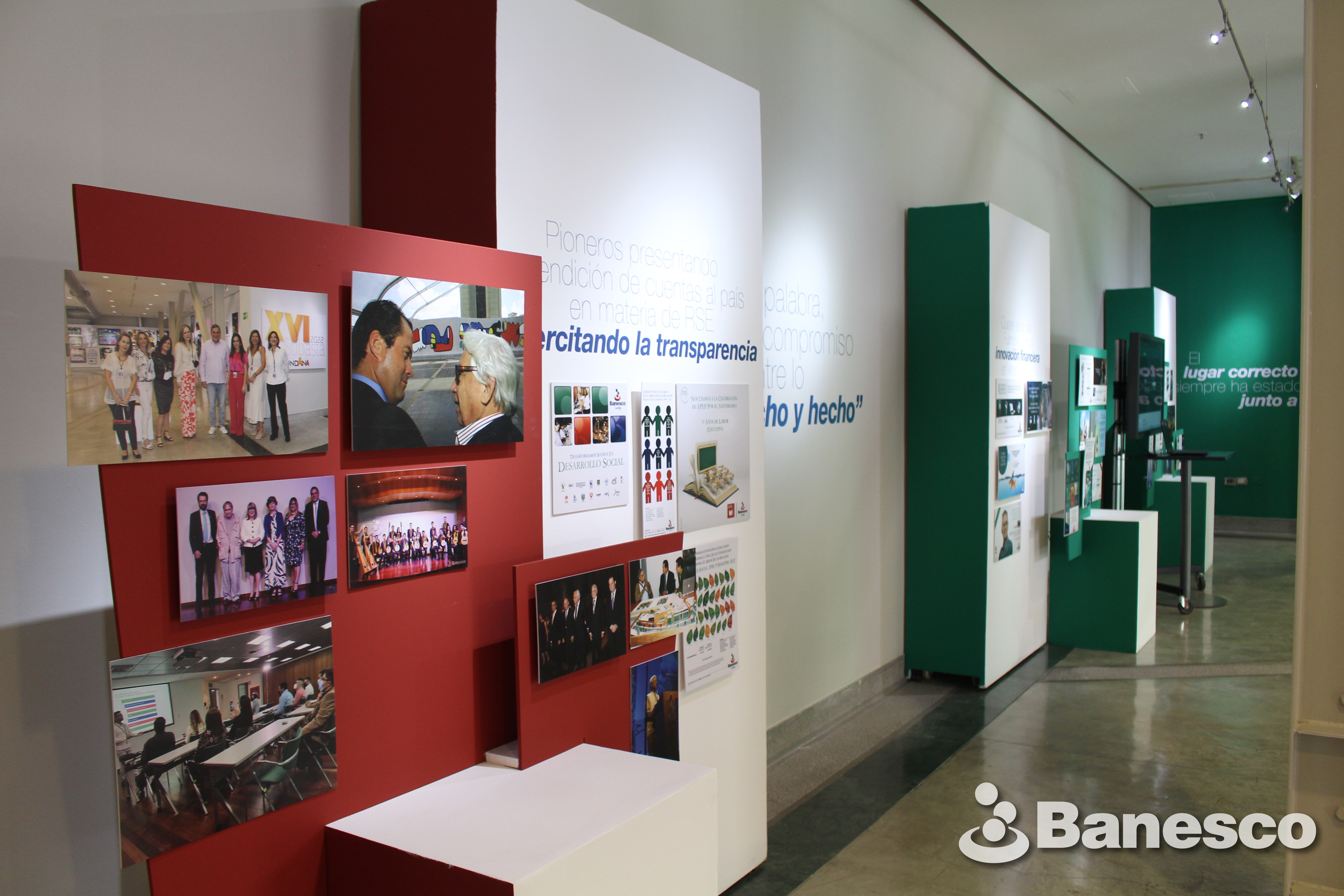 Plano general de fotos y folletos informativos del evento de 30 años de la formación de Banesco.
