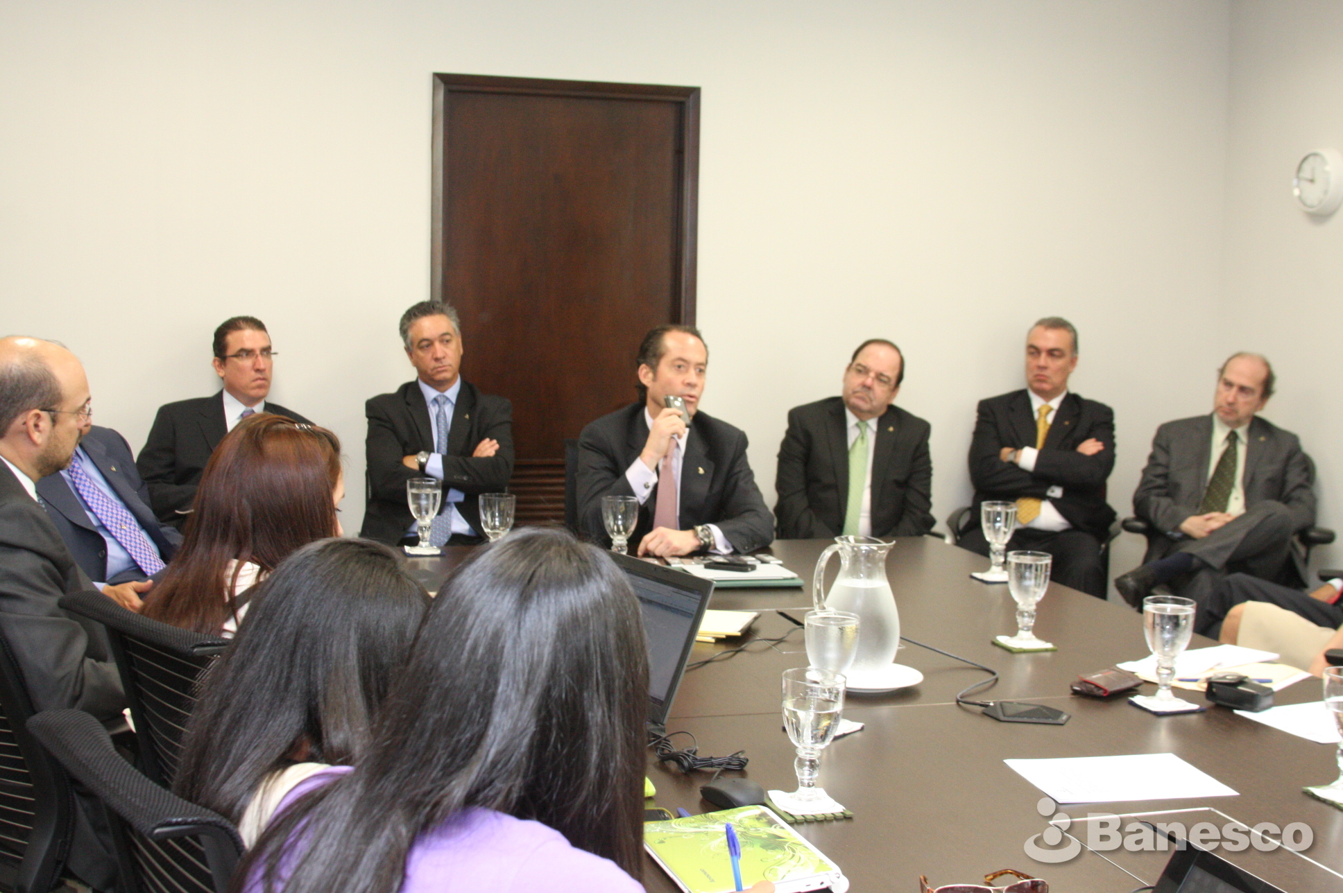 Juan Carlos Escotet y directivos del grupo financiero en reunión con periodistas