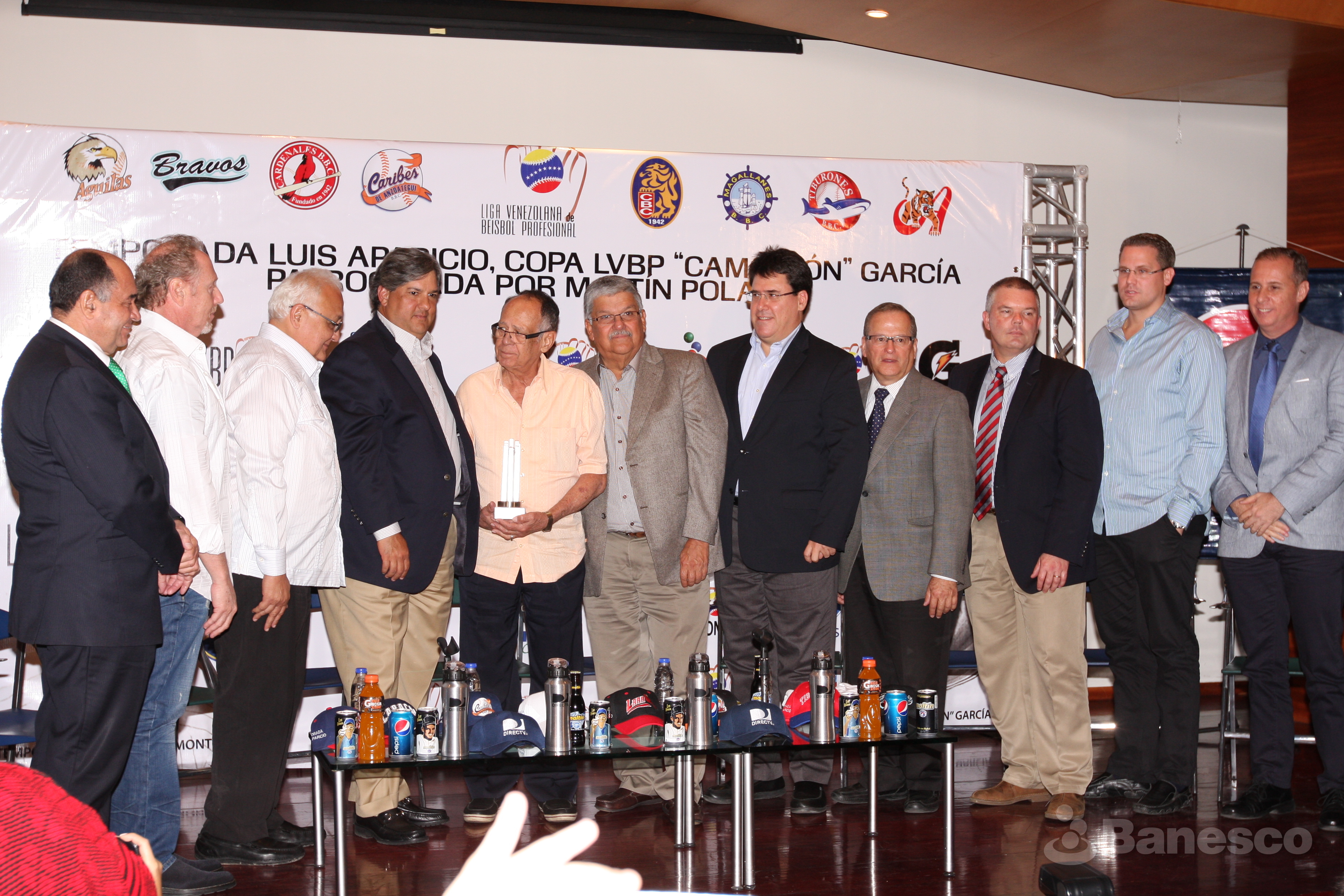 Oscar Prieto Párraga, presidente de la LVBP entrega reconocimiento a Luis Aparicio, el cual coincide con los 30 años de su exaltación al Salón de la Fama de las Grandes Ligas. En el evento estuvieron presentes otros directivos como Humberto Angrisano y Domingo Santander, además de los presidentes y representantes de las 8 novenas que integran la pelota rentada,