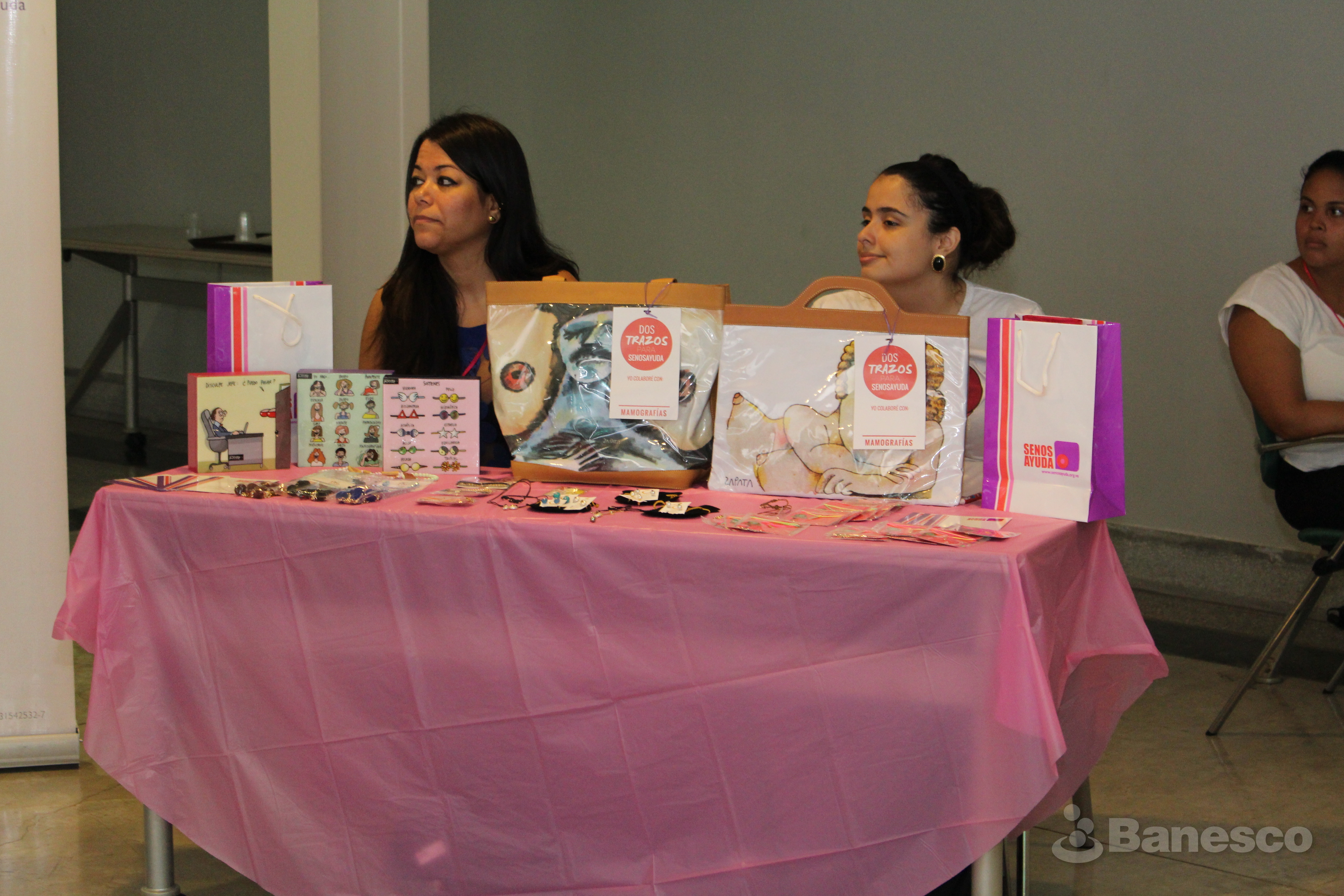Stand y miembros de la organización Senos Ayuda en los espacios de Ciudad Banesco, en conmemoración al #OctubreRosa por la lucha contra el cáncer de seno.