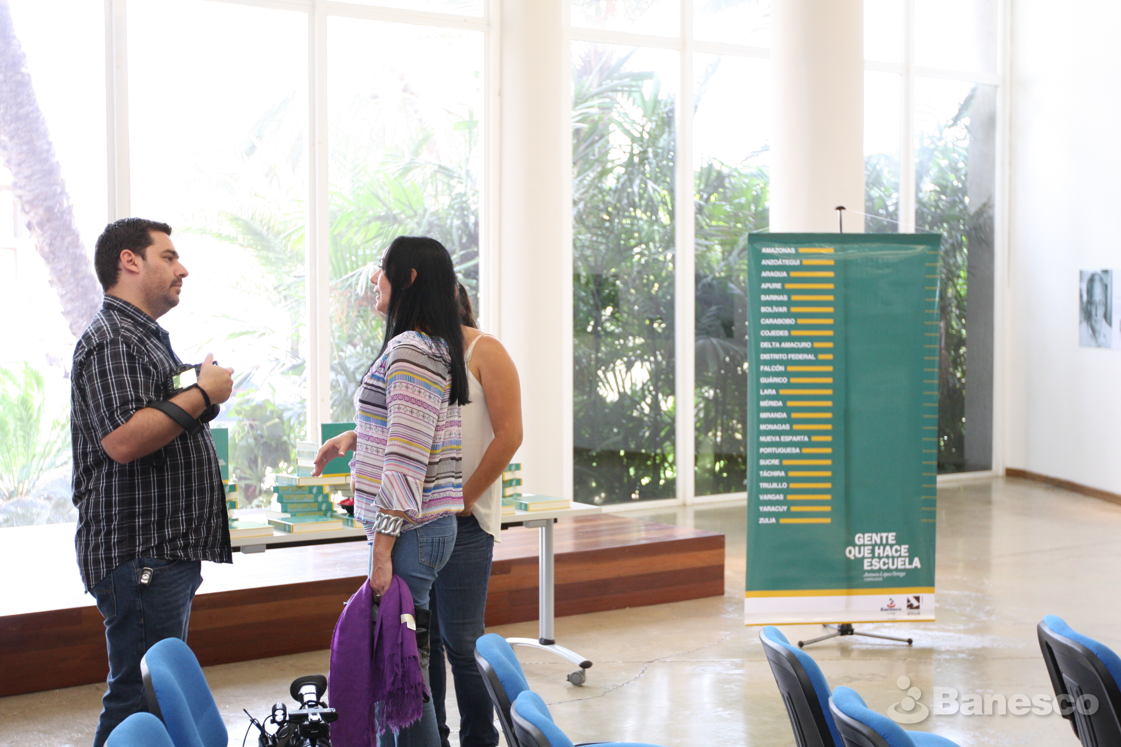 Recorrido de asistentes a la exposición con motivo de la presentación del libro "Gente Que Hace Escuela" el cual recoge los testimonios de 32 venezolanos, maestros en sus áreas del saber y el hacer. Evento realizado en la Universidad Corporativa SIGO de Porlamar.