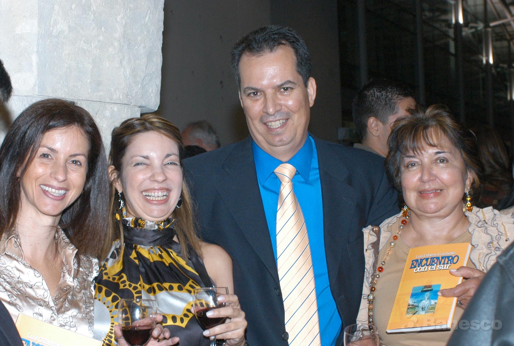 El poeta y artista plástico Luis Gilberto Caraballo comparte junto a invitadas durante el brindis posterior al bautizo del poemario Encuentro con el sur.
