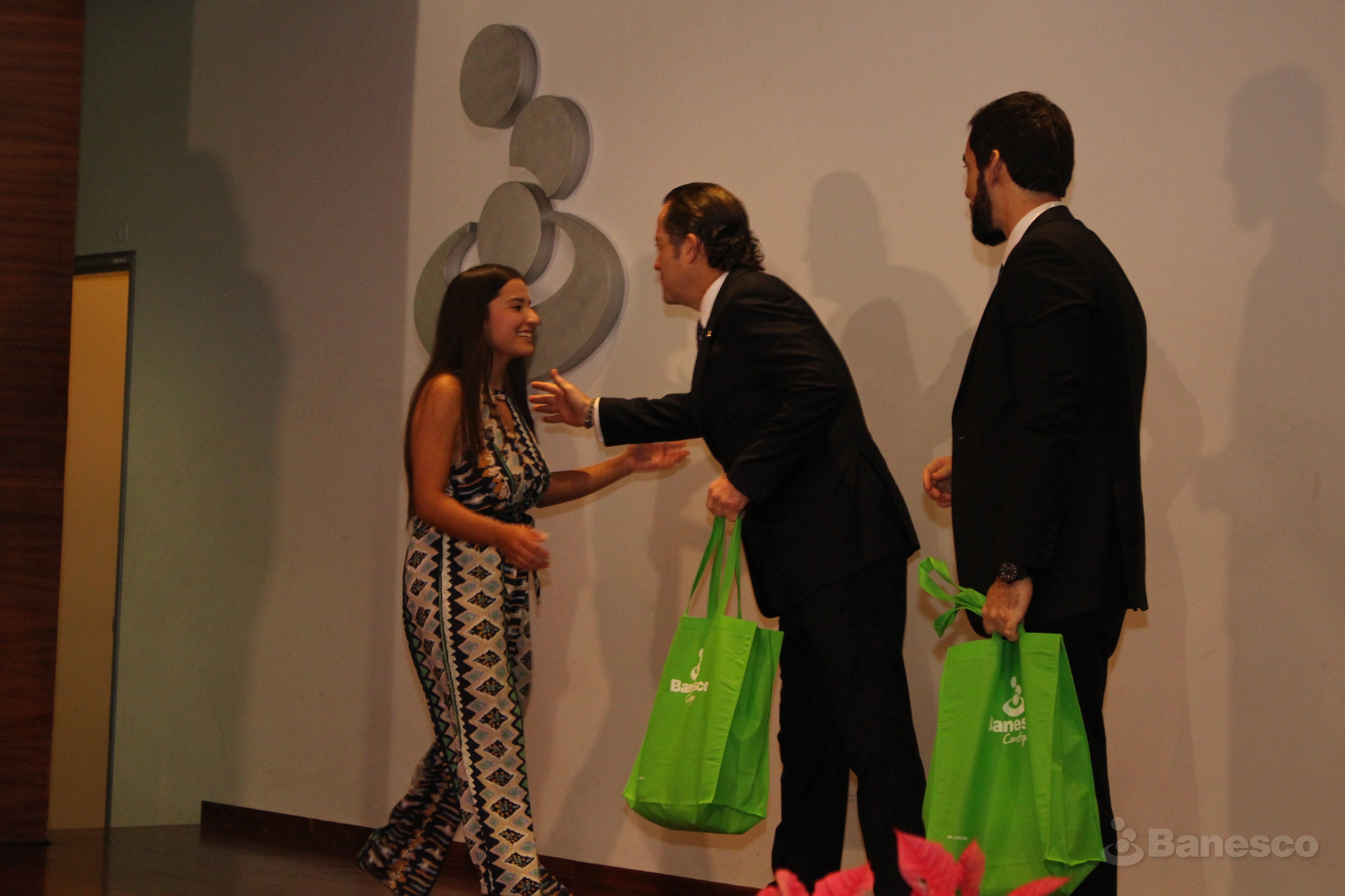 Juan Calos Escotet entrega obsequio a beneficiaria