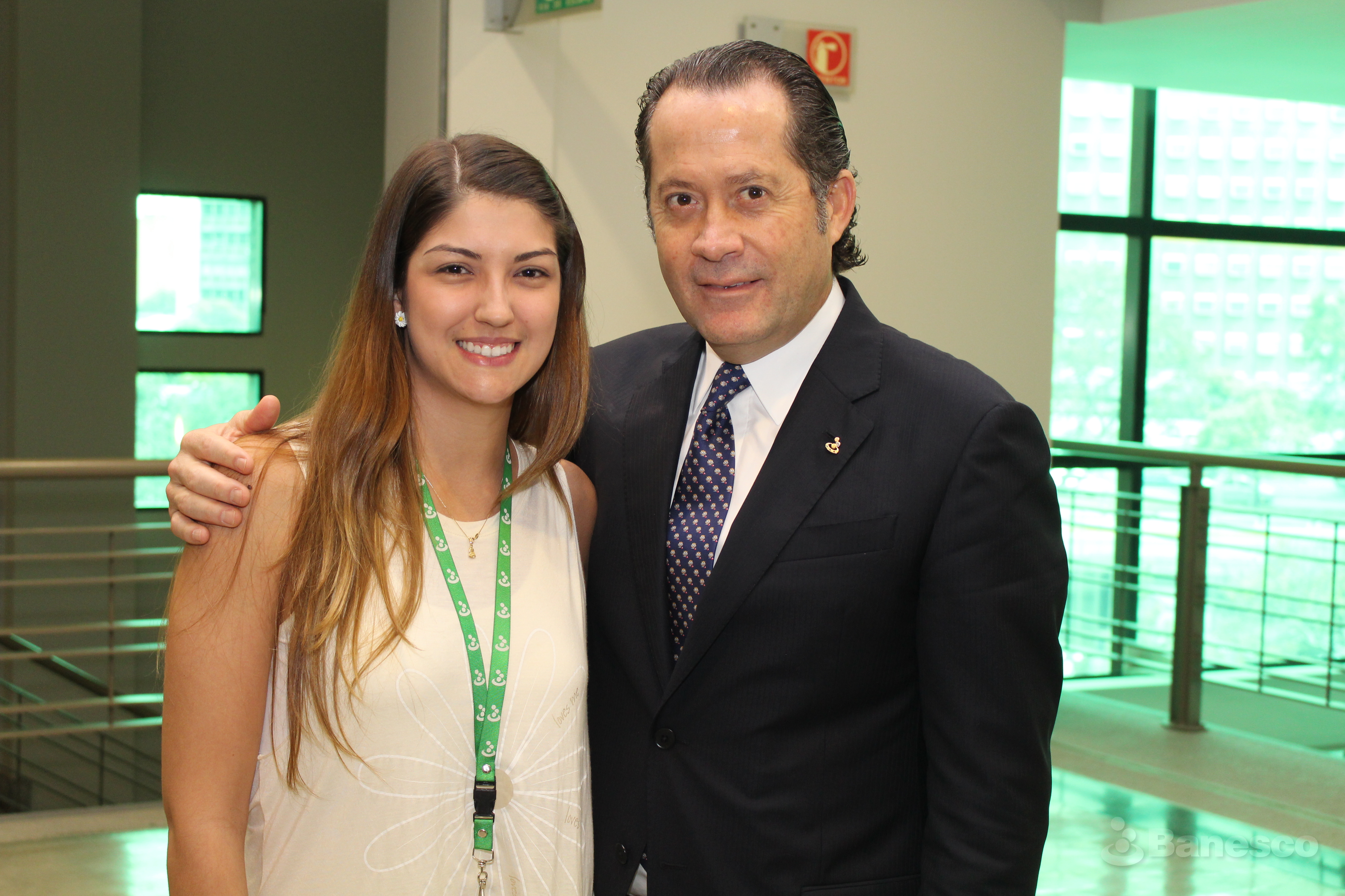 Juan Carlos Escotet con una Ciudadana Banesco durante el encuentro de Becarios de la Universidad Católica Andrés Bello (UCAB) realizado en Ciudad Banesco.