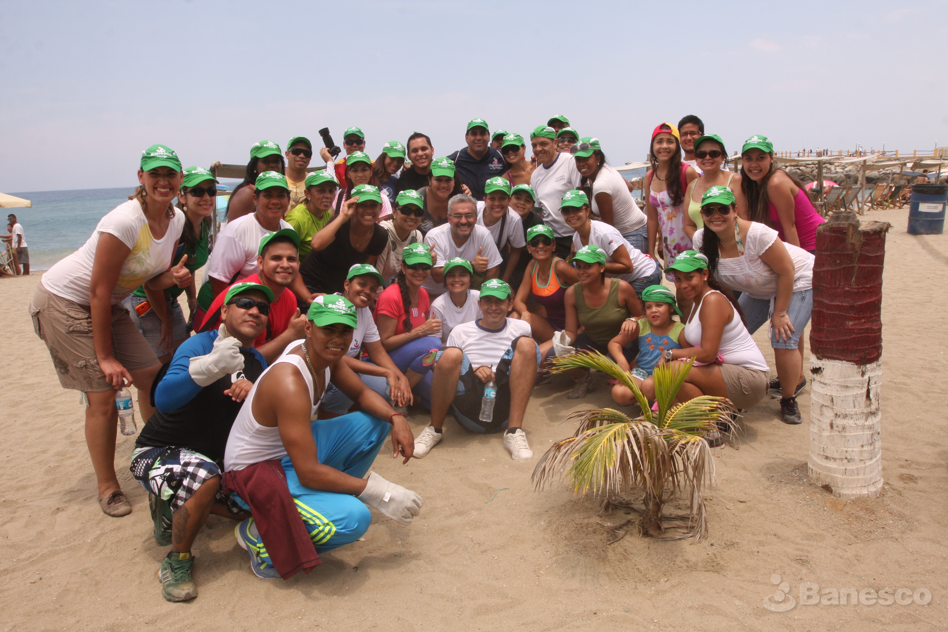Voluntarios Banesco en la actividad de recaudación de desechos sólidos en las playas del litoral central, durante la celebración del día mundial de las playas.