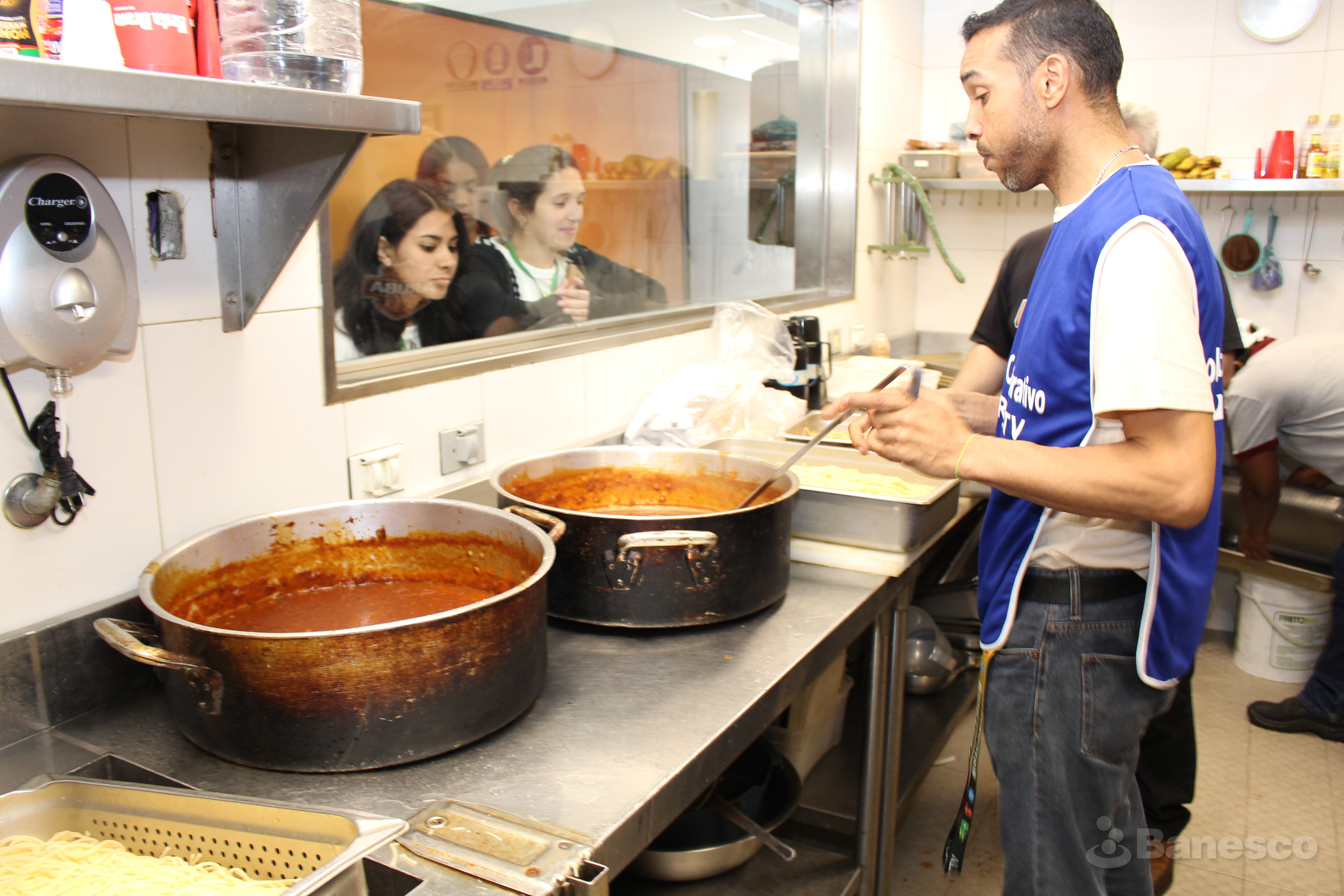 Voluntarios de Directv y Banesco en preparación de la comida en las instalaciones de Unicasa para la Jornada solidaria