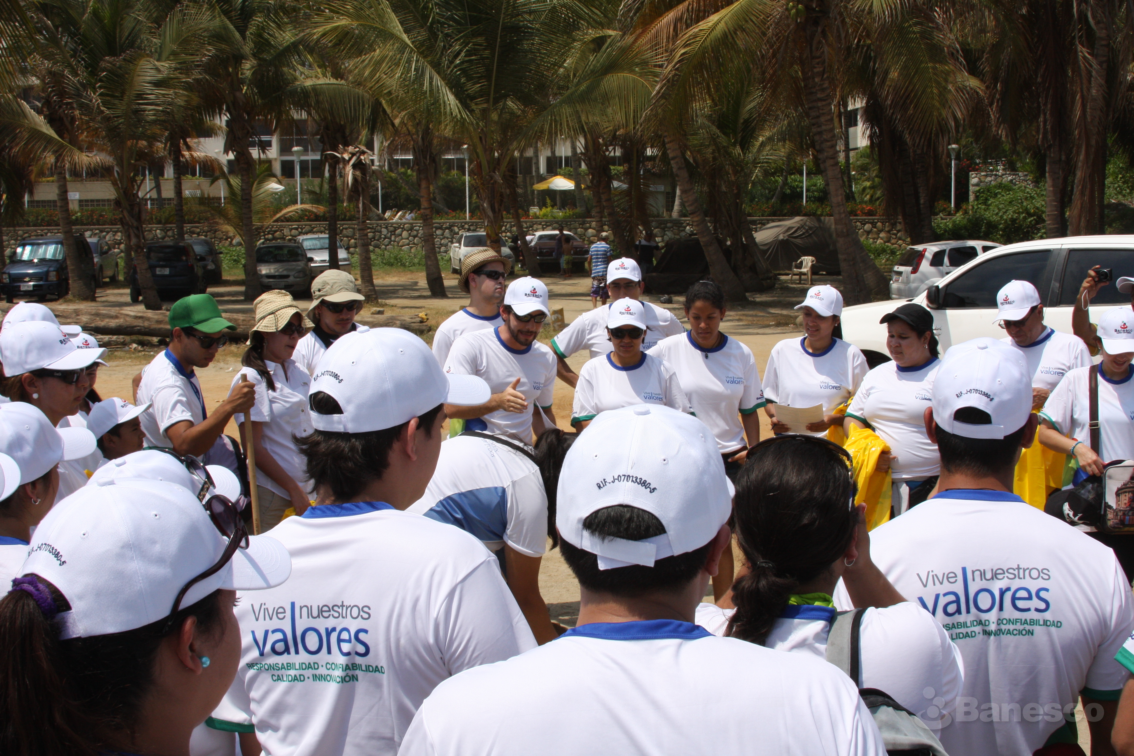 El Equipo de Voluntarios Banesco en Playa Escondida, durante la recolección de desechos sólidos.