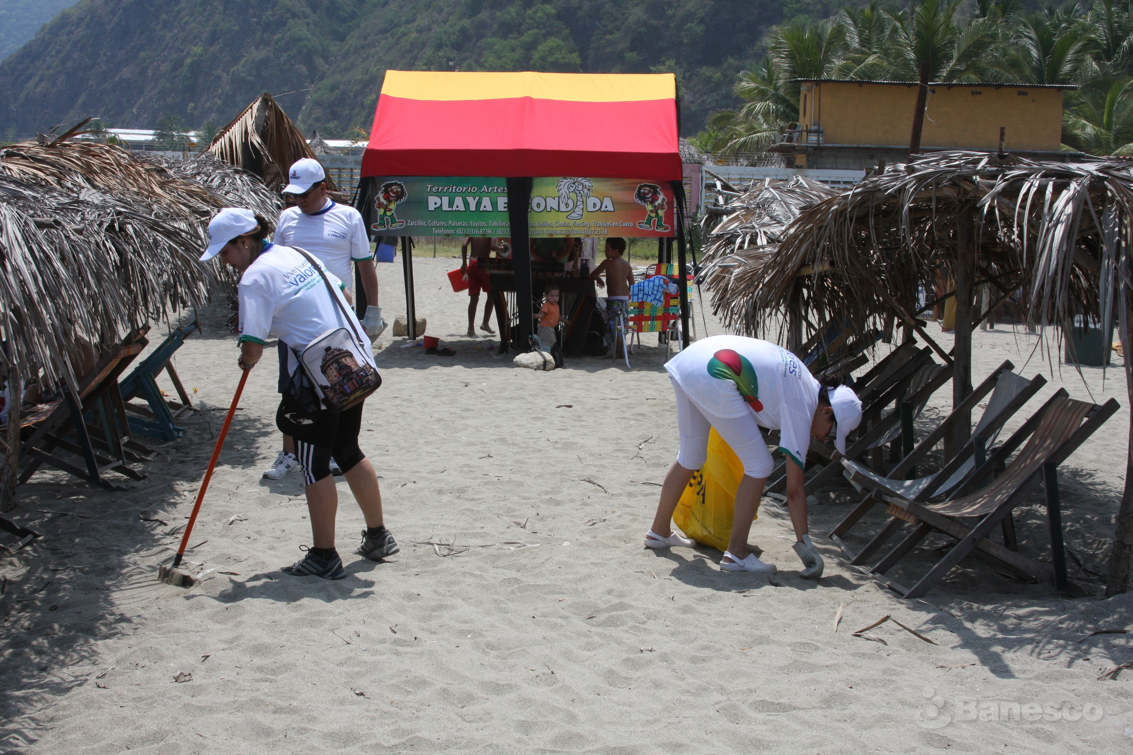 Voluntarios Banesco durante la acumulación de desechos en las playas del litoral central.
