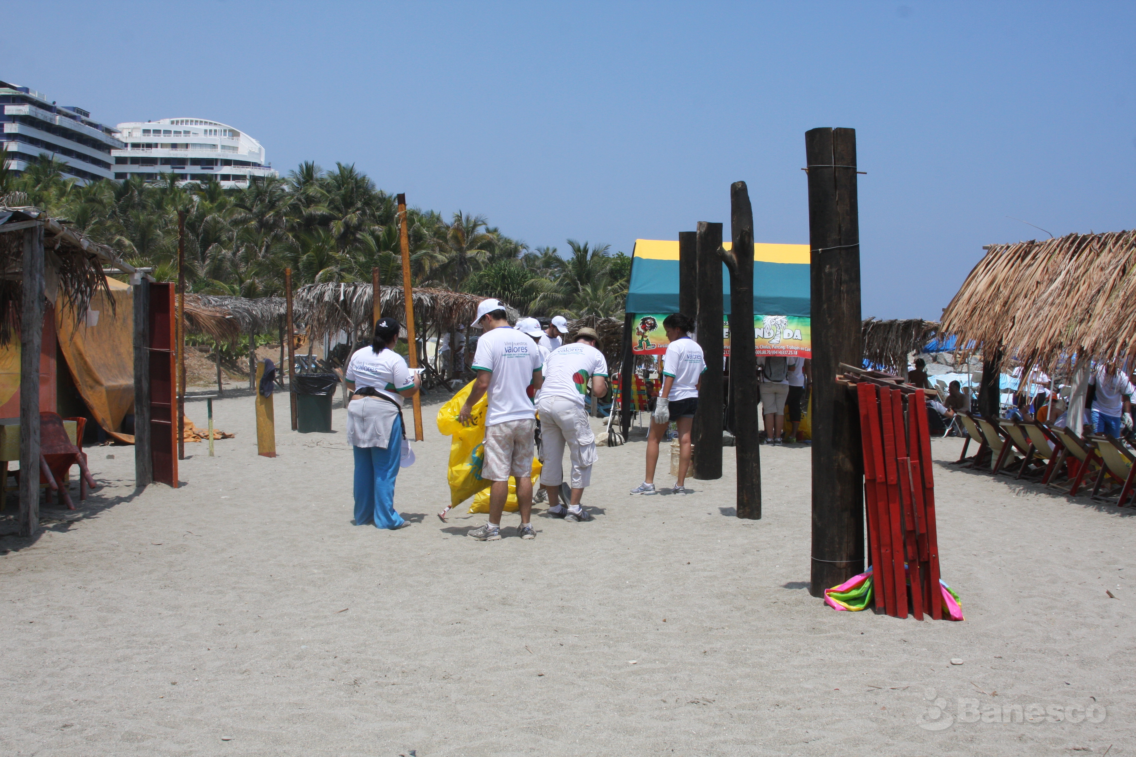 El Grupo de Voluntarios Banesco en la recolección de desechos en las playas en el marco del Día Mundial de las Playas.