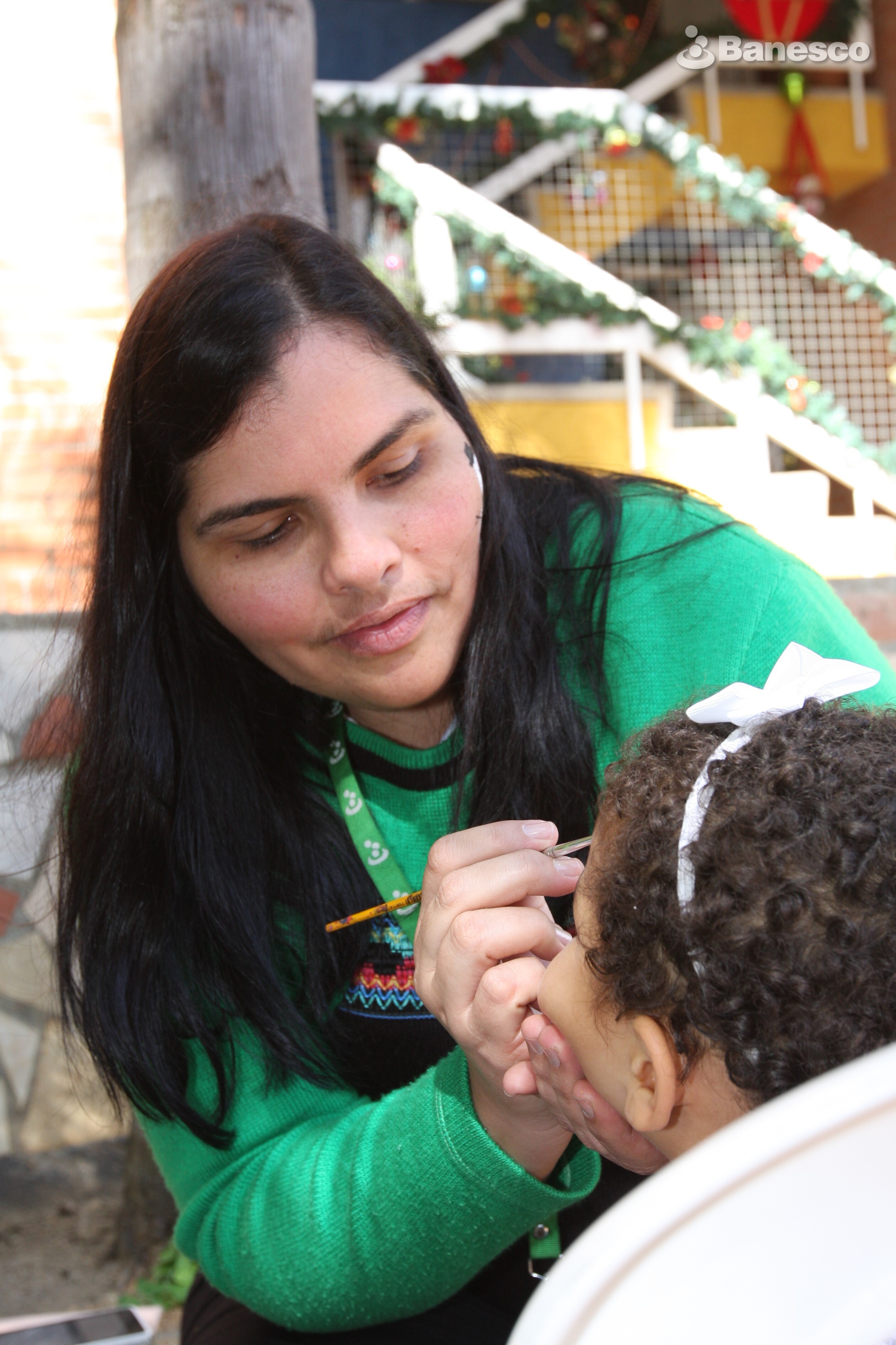 La voluntaria de Banesco Erika Matute en la actividad especial hecha para los niños de la Villa de los Chiquiticos de FUNDANA