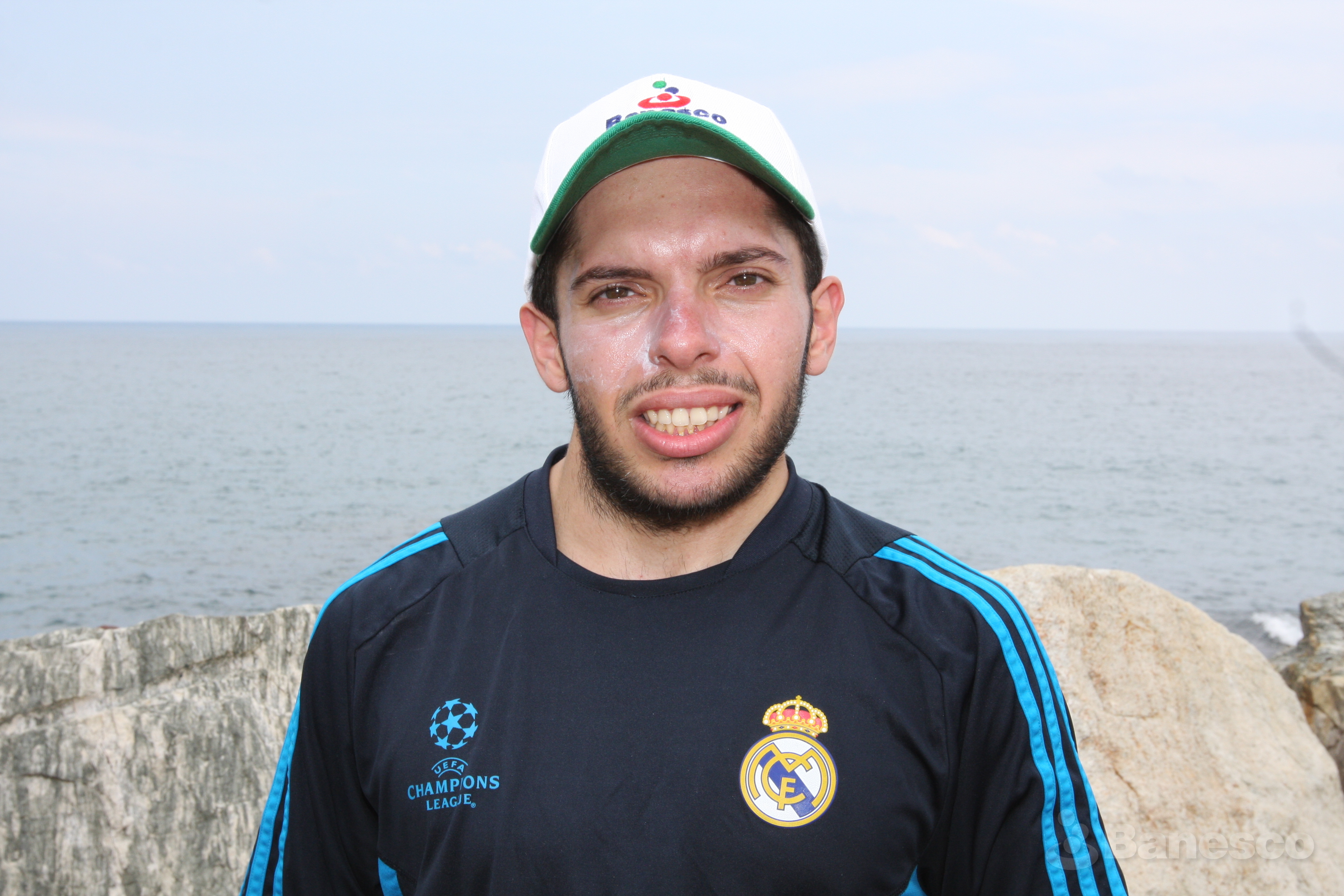 Emilio Manzilla del grupo de Voluntarios Banesco durante la recopilación de desechos sólidos en Playa Escondida.