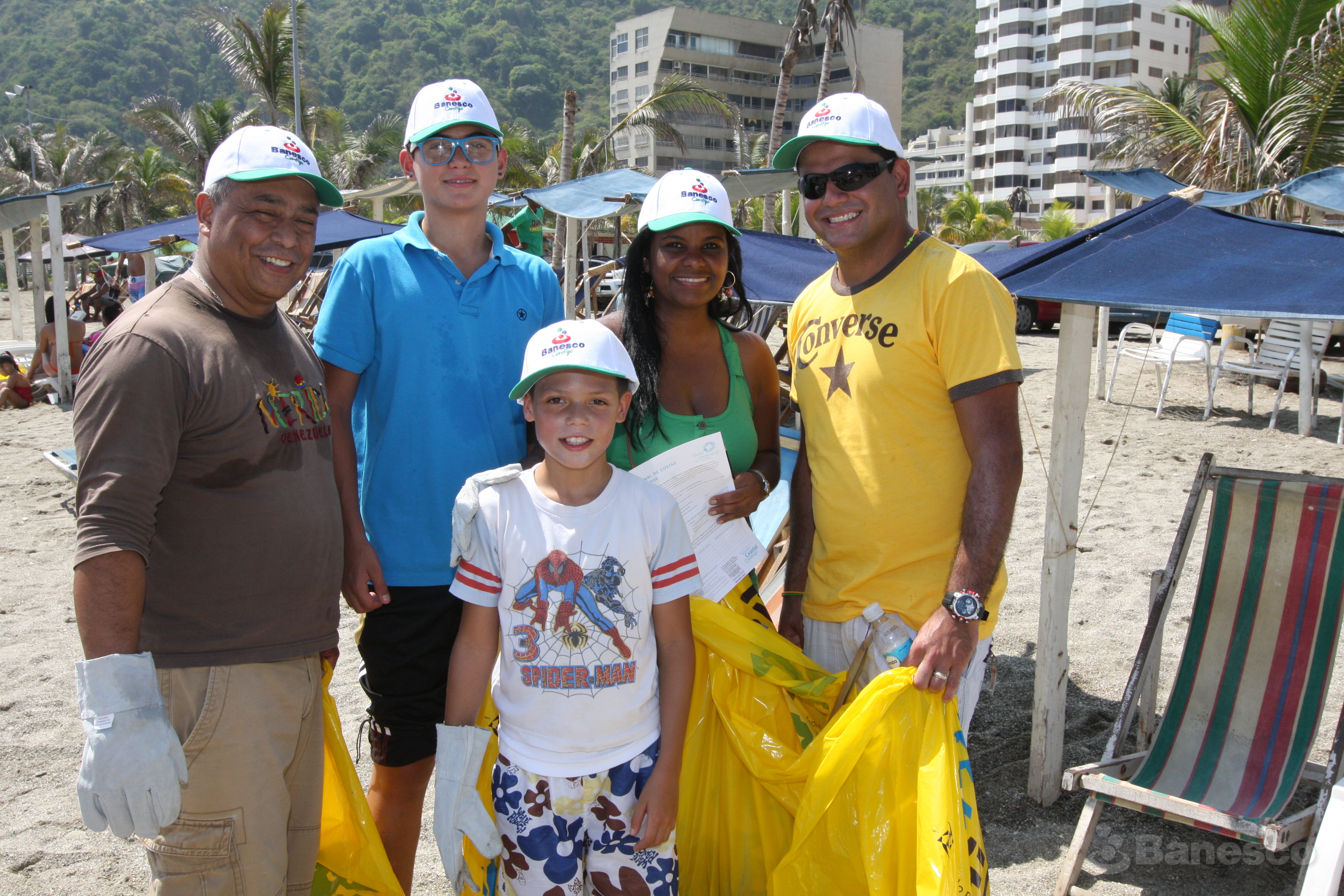 Voluntarios Banesco junto a familiares colaboradores de la ambientación y recuperación de espacios en Playa Escondida del estado La Guaira.