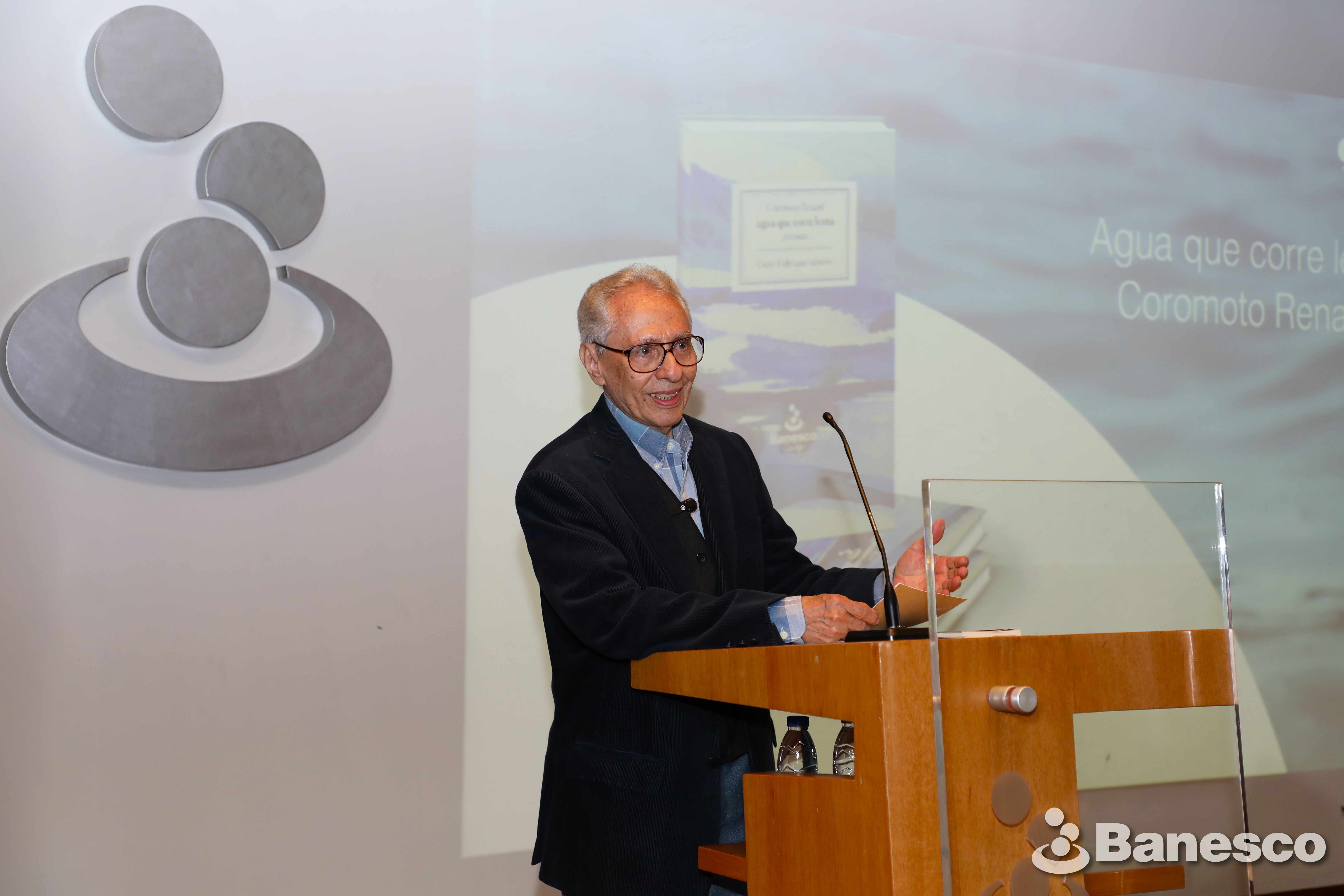 José Balza escritor y ensayista da palabras en el bautizo y presentación del libro "Agua que corre lenta" realizado en el Auditorio Fernando Crespo Suñer