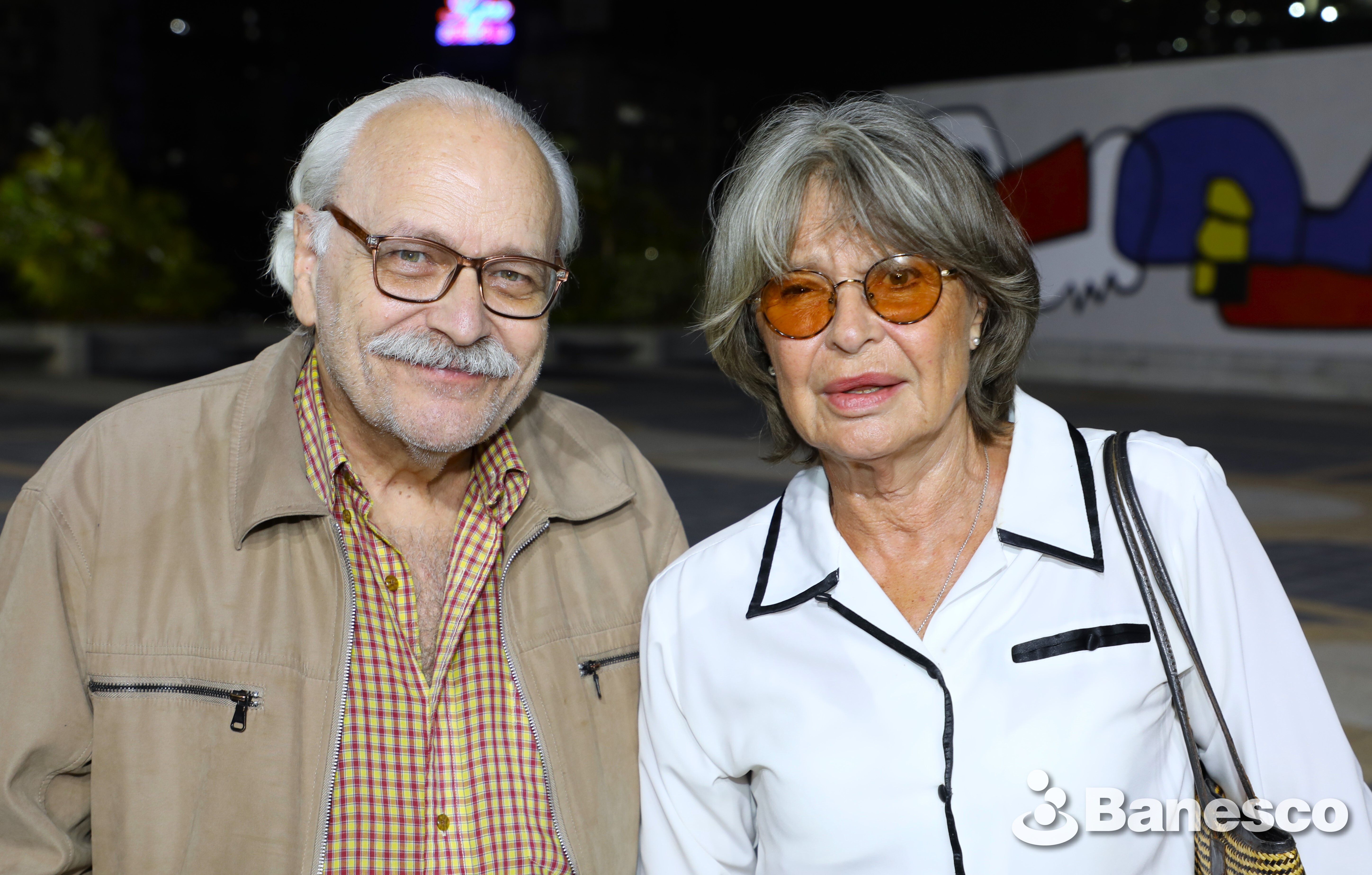 Enrique Arenas junto a Solveig Hoogesteijn en las instalaciones de Ciudad Banesco durante la presentación del libro "Agua que corre lenta"